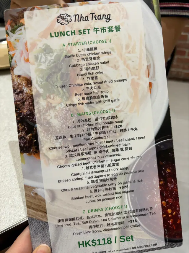 Menu越式晚餐越式炸春卷 $98金黃香脆的春卷,滿載豬肉、蝦、黑木耳、香葉、酸蘿蔔等食材!內外兼備!