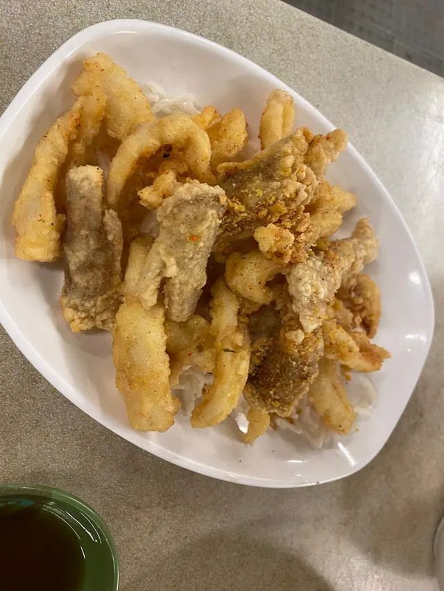 菠蘿咕嚕肉肉顏色好靚,可惜味道太濃,而且肉太少骨太多。煎蓮藕餅蓮藕都好爽口,非常脆及香口,可惜太鹹。炒貴刁炒貴刁真係炒粿條,食落好似炒河粉咁樣,但係呢一碟就煮得有啲油同鹹。炸子雞呢碟係四碟入面最好食,皮脆肉滑,但都係偏咸。查看更多