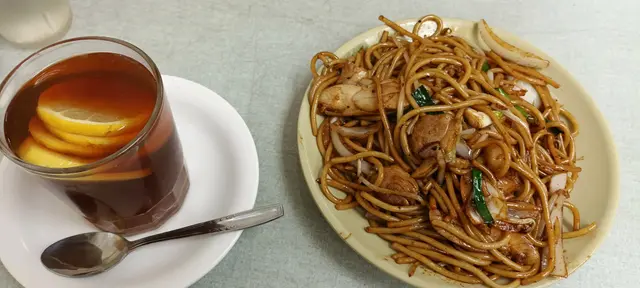 踏入牛池灣的英輝咖啡屋,彷彿穿越時光隧道,舊式地磚與牆身花磚拼貼出濃厚年代懷舊氛圍,半開放式吧檯與卡座設計更保留老冰室獨有的市井韻味,是本地街坊與老饕的隱藏據點。這裡的下午茶選擇平實卻充滿驚喜,推薦嘗試「迷你干炒黑椒雞絲意粉」,即點即炒的鑊氣十足,雞絲分量慷慨,黑椒香氣撲鼻,微辣惹味,雖略帶油光卻不掩其地道風味,搭配彈牙意粉,滿足感十足。 店家另一亮點在於親民價位與樸實服務,凍奶茶茶香濃郁,甜度適中,搭配西煎雙蛋或火腿通粉等經典港式輕食,人均消費約40至50港元,性價比極高。若行程安排至彩虹邨或牛池灣街市,不妨順道造訪這間低調卻充滿人情味的老字號,感受香港茶餐廳的在地魅力。…查看更多
