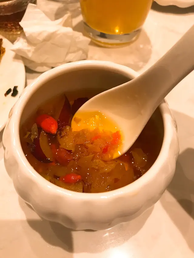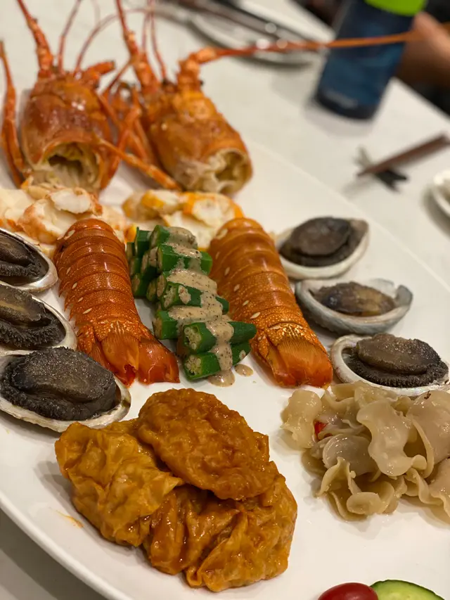 。待應推介有私房菜可以試下,今晚第一次黎試水$350/位,佢問有無野唔食等范太幫你諗食咩。好唔使諗正!中式Omakase,菜式以當日餐廳新鮮食材為準。涼菜係鮑魚伴麵超水準,蒜蓉粉絲蒸大扇貝,自家制酸齊,椰子粉葛燉瘦肉,清蒸馬友魚,豉油皇海蝦,豉油雞,清菜,蘢仔蒸白飯,完全無味精。一個字正!如果同我一樣有選擇困難症直接叫中式Omakase, 坐定定等食