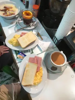 It was the first (maybe the second) day of her gallery showcase in SYP, and we had brunch at this alley back cha chaan teng. Crowded and being very lively, this place has both indoor and outdoor seatings, visitors brought their pets/ kids/ friends/ even came solo. Such a good place with the ultimate HK style pasta in hot broth. I picked the soup pasta with beef, and the set came with scrambled egg and ham, a piece of toast and a drink of your choice. We sat by the kitchen island and you can see the barista making your drinks hot and fresh. Very good quality, and this is exactly the good everyday Hong Kong breakfast/ brunch you crave for before you kick start your weekend. Special drink on menu: Orange breakfast tea! Usually there’s fresh lemon in hot breakfast tea in local cha chaan teng, this place innovates by switching to a thick fresh slice of orange, that’s a fabulous move! …查看更多