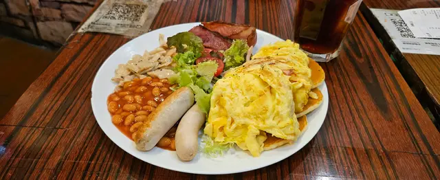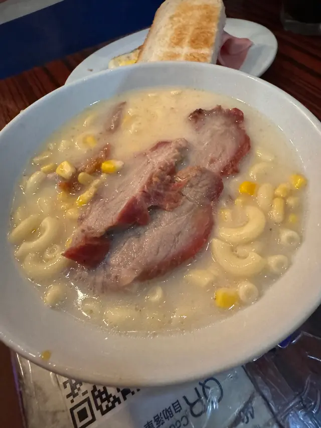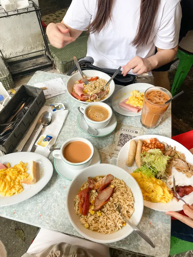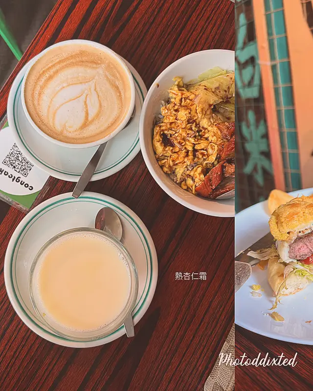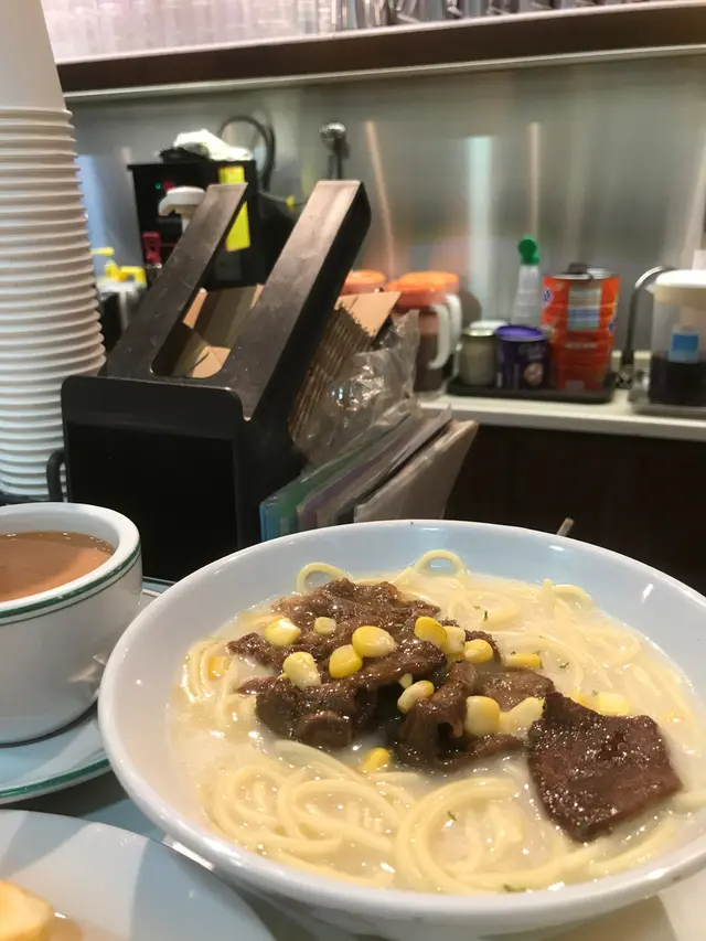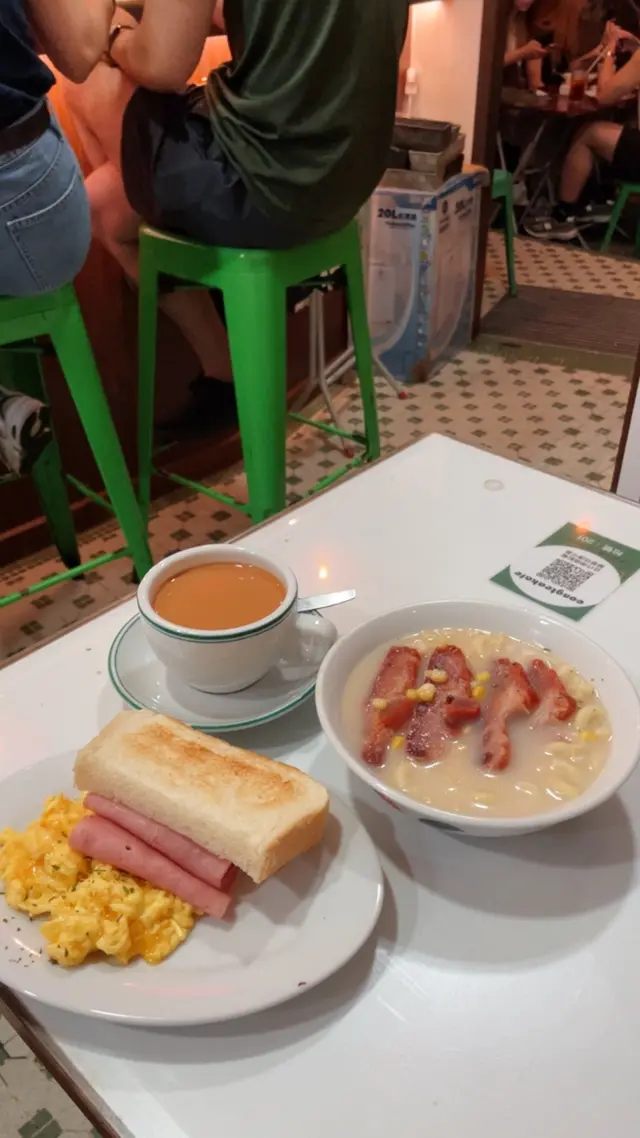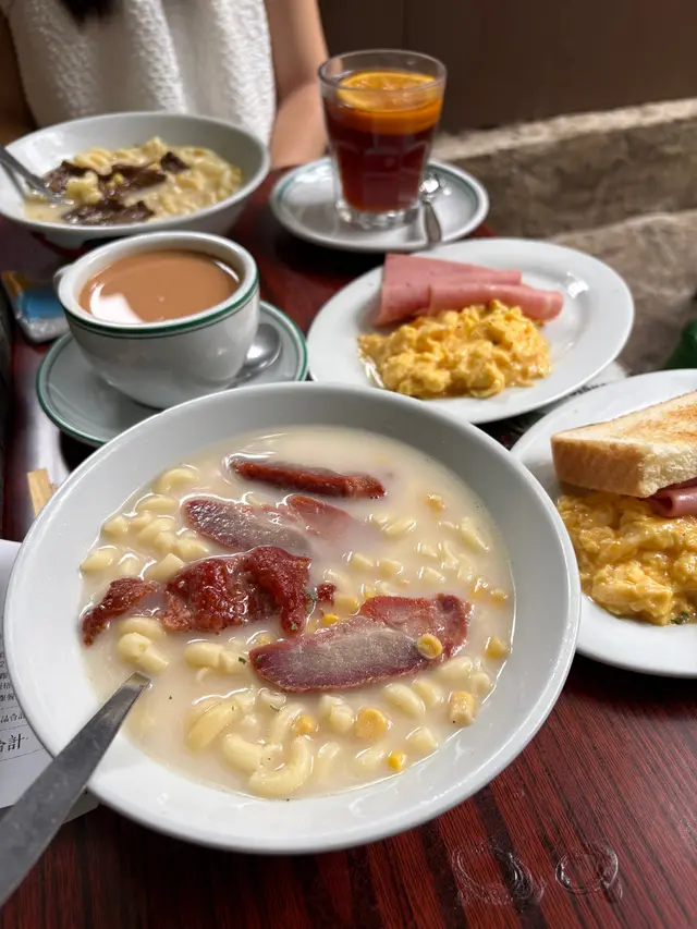 It was the first (maybe the second) day of her gallery showcase in SYP, and we had brunch at this alley back cha chaan teng. Crowded and being very lively, this place has both indoor and outdoor seatings, visitors brought their pets/ kids/ friends/ even came solo. Such a good place with the ultimate HK style pasta in hot broth. I picked the soup pasta with beef, and the set came with scrambled egg and ham, a piece of toast and a drink of your choice. We sat by the kitchen island and you can see the barista making your drinks hot and fresh. Very good quality, and this is exactly the good everyday Hong Kong breakfast/ brunch you crave for before you kick start your weekend. Special drink on menu: Orange breakfast tea! Usually there’s fresh lemon in hot breakfast tea in local cha chaan teng, this place innovates by switching to a thick fresh slice of orange, that’s a fabulous move! …查看更多
