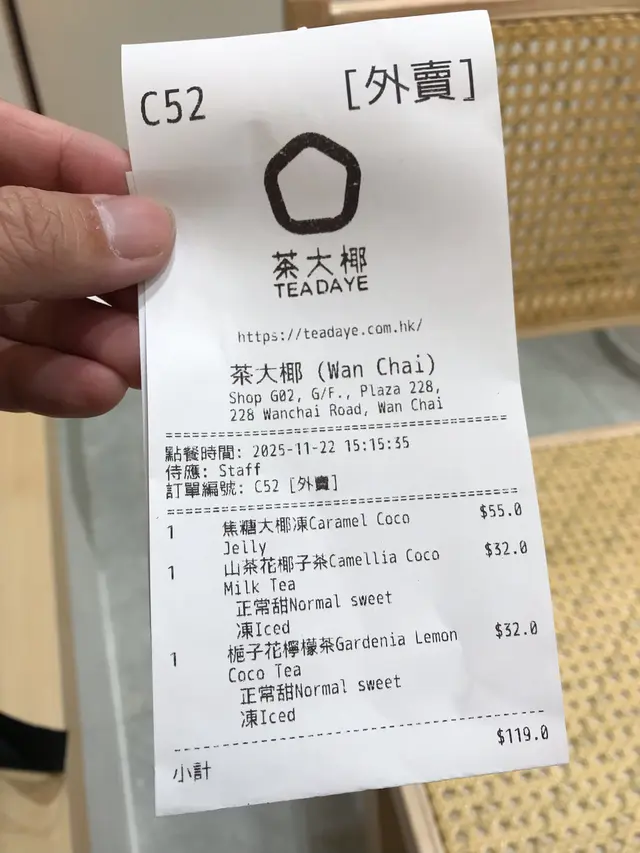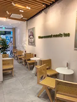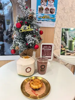 嗰日行到「茶大椰」,想搵個位歎下啲清涼嘢😋 入到去就聞到陣淡淡椰香同茶香,好舒服,成個空間白白乾乾淨淨,配啲木色枱櫈,好清新✅ 叫咗兩款甜品同一杯凍飲❣️ 焦糖大椰凍、山茶花椰子茶同椰子蛋撻😋 首先講個焦糖大椰凍,焦糖唔係死甜嗰種,帶啲微苦香,襯埋底層滑滑嘅椰凍,啱啱好👍 食落去冰冰涼涼,好爽好清新❤️ 山茶花椰子茶就真係幾特別🤩 啲花香出得好自然,後面先有椰香慢慢滲出嚟,飲落順口又唔會膩🥰 嗰陣香氣好輕,啱晒坐低chill住傾計嗰種氣氛❤️ 至於椰子蛋撻,真係幾驚喜🌟 外皮超酥,咬落去嗰下真係有聲😘 入面嗰層椰味蛋餡香噴噴,唔太甜、唔膩嘴,熱辣辣食仲好香🤭 邊位烤得微焦,帶少少苦味,令個味道更立體🤗 整體嚟講,「茶大椰」畀人感覺好輕鬆,好自然✅ 全部味都帶住種清甜,唔誇張但記得落,係嗰種一食完會想再嚟嘅舒服感🤗 簡單講句,就係——好飲、好食、好chill📍 …查看更多