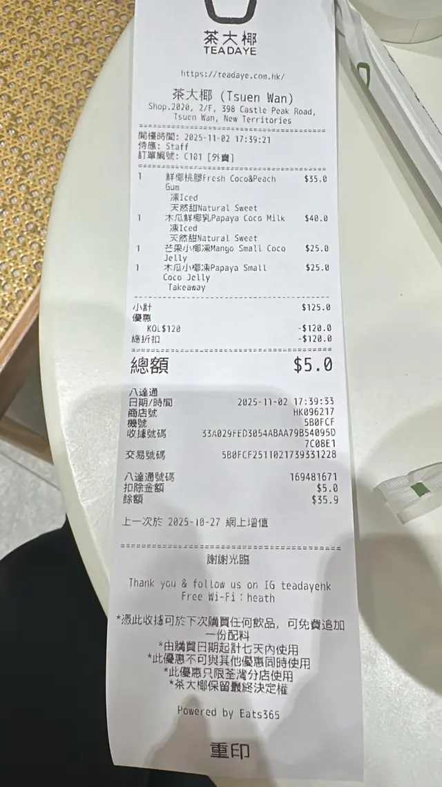 茶大椰「茶大椰」甜品茶飲店終於開喺荃灣愉景新城2樓,呢間甜品茶飲店係以泰國新鮮椰子做主題,用咗純天然嘅椰子做椰凍、椰子茶、鮮椰乳、鮮椰咖啡等甜品飲品,佢哋強調一定係低卡低脂,食完飲完完全唔覺得有負擔添!1.椰皇貓山王$58(10/10)呢個椰皇貓山王入面椰子味奶凍,奶凍好q彈,上面仲鋪滿咗貓山王榴槤果肉,榴槤果肉上面就鋪滿咗椰絲同脆脆,估唔到椰子同榴槤果肉係咁夾嫁,最後連椰子入面嘅椰肉都食埋,好味到不得鳥!2.抹茶生椰乳$42(10/10)呢個抹茶生椰乳個抹茶味好香濃,抹茶帶少少苦澀味,生椰乳好q彈,可以用吸管吸嚟飲,又可以用匙羹食,真係正!3.芒果小椰凍$25(9.5/10)呢個芒果小椰凍個芒果果肉都唔少,椰凍好q彈,唔甜唔錯!2人總共價錢$125個人口味總評分:9.83/10 @teadayehk @dparkhk 地址:荃灣青山公路 - 荃灣段398號愉景新城2樓2020號舖Please follow me🙆♂️ @wheelchaireatinhongkong 如果鍾意我嘅分享,麻煩請follow我,仲有記得Like同Share!🙏🏻🙇🏻♂️#茶大椰 #荃灣好去處 #荃灣美食 #dpark #愉景新城 #甜品店 #茶飲店 #香港美食 #hkfoodie #hkfoodblogger #hkfoodpic #hkfoods #hkfoodshare #dessert #hkdessertshop #food #hkfoodstagram #hkfoodpic #hkigfood #foodiehk #yummy #delicious #foodie #hkfoodieblogger #hkfoodies #wheelchaireatinhongkong…查看更多