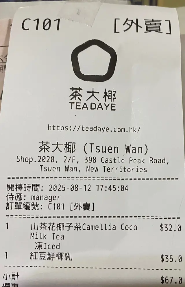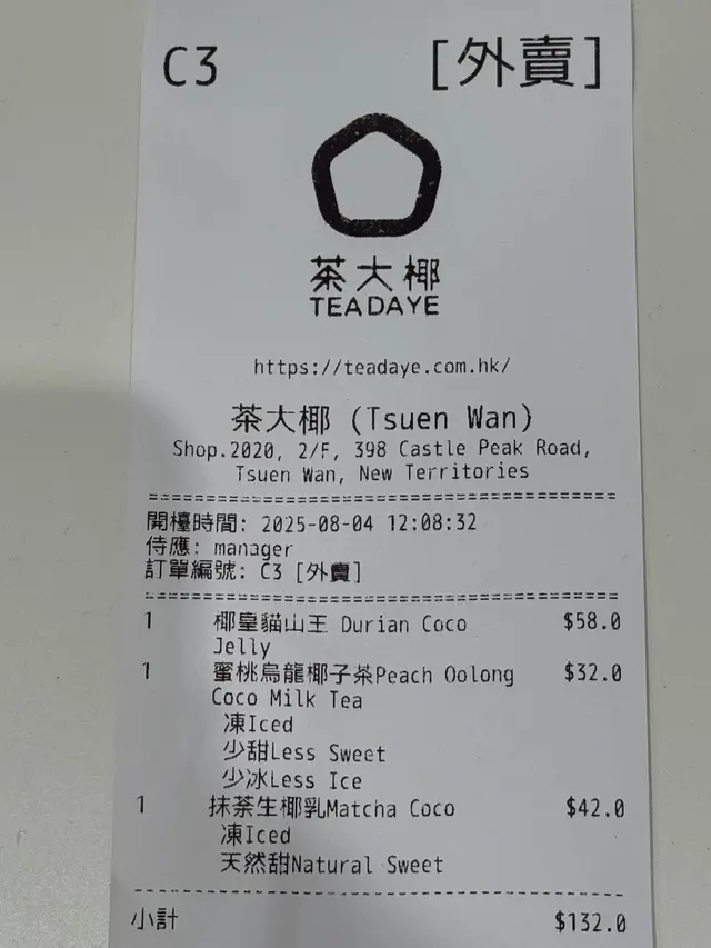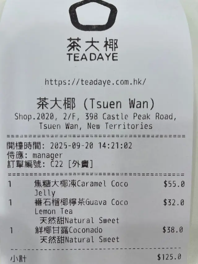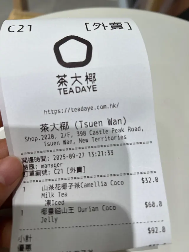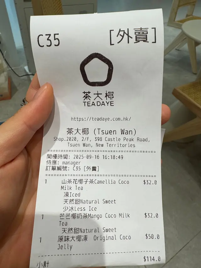 茶大椰 (愉景新城) (荃灣) 網址: https://s.openrice.com/QrbS0naCF00 地址: 香港荃灣青山公路 - 荃灣段398號愉景新城2樓2020號舖