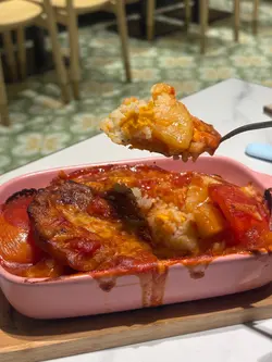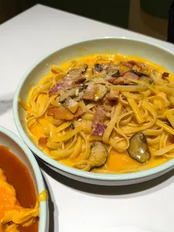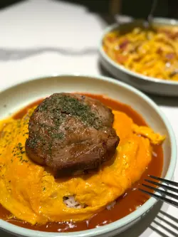 今日去新都城行街,行行下見肚餓就周圍搵下有咩食🙂↕️咁啱見到有間新開既餐廳好似幾吸引,就決定試試佢😋👉🏻鮮茄汁豬扒滑蛋包飯+凍檸茶 $58+3✨外觀色彩鮮艷,金黃色既滑蛋覆蓋喺米飯上,搭配鮮紅既茄汁同煎至微焦的豬扒,上面再落埋香草,賣相誘人,令人食指大動😋豬扒厚身,唔會煎得好乾柴,有肉汁🙂↕️鮮茄汁酸甜開胃,份量好夠,食哂成碟飯都仲有剩😋茄汁同滑蛋完美融合,提升整體既味道🙂↕️滑蛋滑身,有蛋汁流落來,唔會乾🙂↕️👉🏻蛋黃煙肉卡邦尼扁意粉 $58✨意粉煮得啱啱好唔會太硬,亦都唔會太腍,口感彈牙🙂↕️意粉掛滿醬汁,醬汁味道濃郁,有好香既蛋黃味,配料絕不孤寒,蘑菇同埋煙肉都有好多😋煙肉脆身帶焦香,大大塊,食落口非常滿足😌意粉上面佈滿芝士粉,咸香咸香,令意粉既味道更加有層次感👉🏻草莓沙冰 +$12✨草莓沙冰唔係藥水味,飲落口仲飲到草莓籽,沙冰非常夠凍,上到枱都唔會溶哂🙂↕️…查看更多