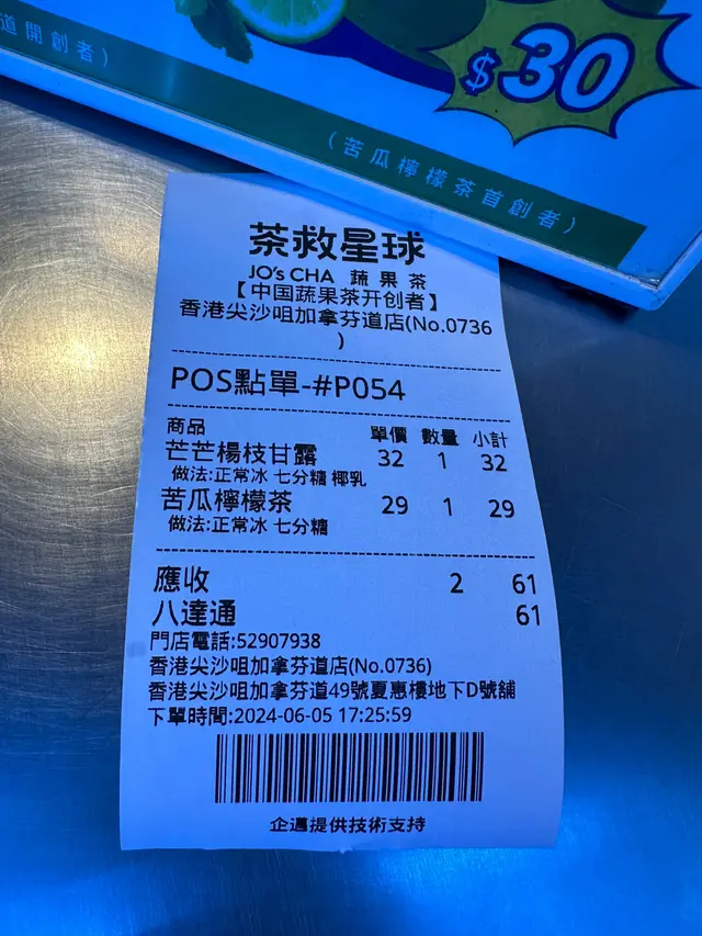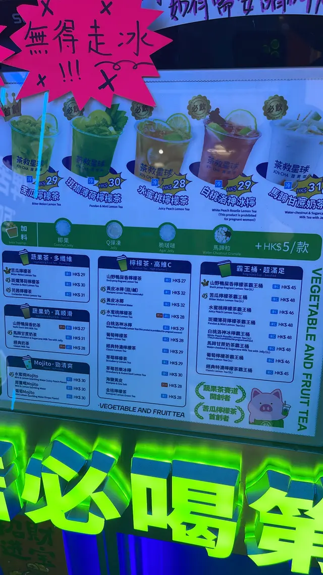 茶救星球蔬果茶 (尖沙咀) 網址: https://s.openrice.com/QrbS0VA0C00 地址: 香港尖沙咀加拿分道49號夏惠樓地舖 電話: +852 52907938