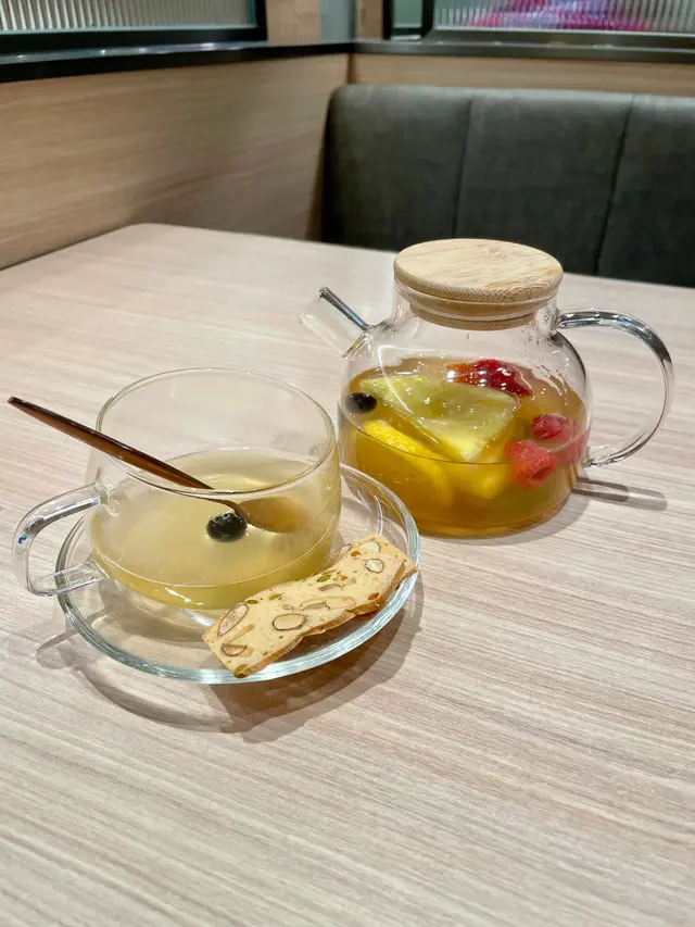 剛巧在屯門市廣場與朋友相遇,所以找一間可以吃甜品又可以跟朋友舒服地聊天的店下午茶時段人較少,下午茶選擇很多種類,但我們都不選擇主食,選擇是甜品(女生對甜品比較難抗拒🙈)(下午茶餐)巧克力曲奇蜜糖磚塊 ($78)3塊厚蜜糖多士,蜜糖多士中間切成一粒粒蜜糖磚塊,配上忌廉及巧克力曲奇雪糕,很邪惡我朋友比較喜歡吃蜜糖磚塊,而我相反比較喜歡吃多士邊邊,我們真的是互補🤣(下午茶配飲品)熱玫瑰蜜香紅茶(無糖)很香玫瑰味,配送的杏仁薄脆暖暖的,很香牛油及杏仁味,很好吃😋堂飲限定 凍小青桔黃皮綠茶($8)偏重小青桔味的綠茶,感覺很清爽奶蓋瀑布蛋糕(焙茶味)配草莓冰淇淋(Dreyer's)($68)下午茶餐加配可由原價$88減至$68,很抵超燶焙茶味奶蓋,吃起來不容易膩,幾層pancake夾著葡萄加奶油旁邊的草莓及葡萄很清甜,Dreyer's草莓雪糕中帶果肉配蛋糕很棒…查看更多