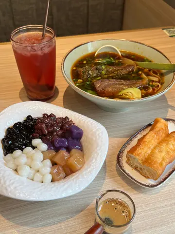 偶爾發現呢廳嘅下午茶都幾抵食,牛肉麵接近半價❤️「招牌紅燒牛肉麵」🐮湯底濃郁,帶有牛骨、花椒八角嘅香味,厚切牛腱肉同筋分布均勻,牛肉軟焾,手工麵煙韌彈牙,口感幾好🍜。仲可以用優惠價加$8加碟炸油條,性價比ok甜品「黑糖芋圓仙草」有齊芋圓、地瓜圓、珍珠、白玉丸子同仙草,淋埋黑糖醬,食落清甜涼爽,夏天必點,份量比想像中多😆🌞❄️⟡紅燒牛肉麵(下午茶)$58⟡ 黑糖芋圓仙草$40⟡炸油條(半條) $8