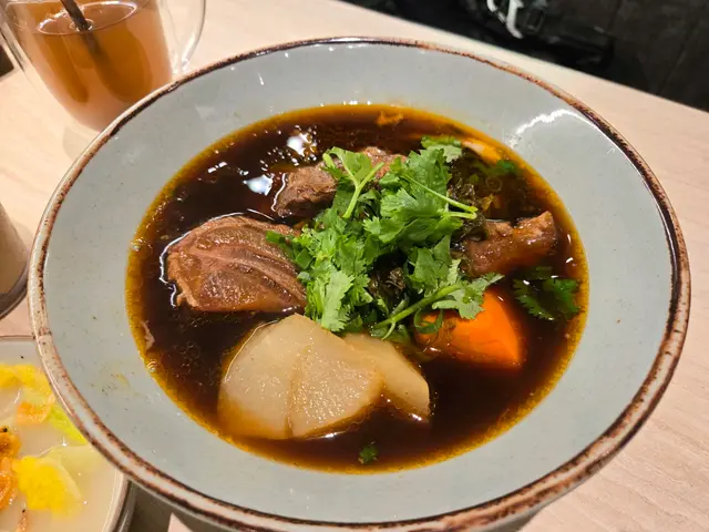 Teawood係一間連鎖台式餐廳,有時都會食吓,今次就第一次喺呢度食嘢,佢嘅裝修都幾新淨,又坐得幾舒服,今次嚟食午餐,我食返佢最出名嘅紅燒牛肉麵,面質彈口,份量正常,不過不失,再配一杯熱薑母茶,薑母茶配一塊餅乾$88。另外,再點了一個鹽燒雞粒肉燥蓋飯,肉燥味濃郁很好味,炸雞扒超級大塊,再配上青瓜酸菜,份量很大,再配一杯芋泥珍珠奶茶,杯嘢飲有啲難飲,$68。每次嚟到呢一間餐廳都會感覺很好,今次體驗也正正常常。…查看更多