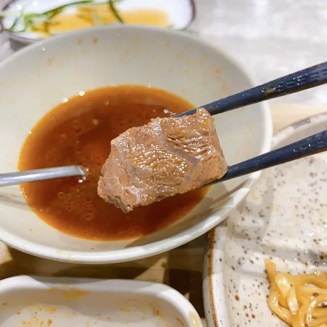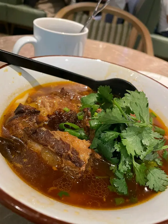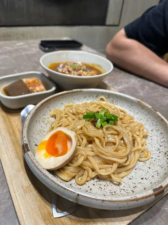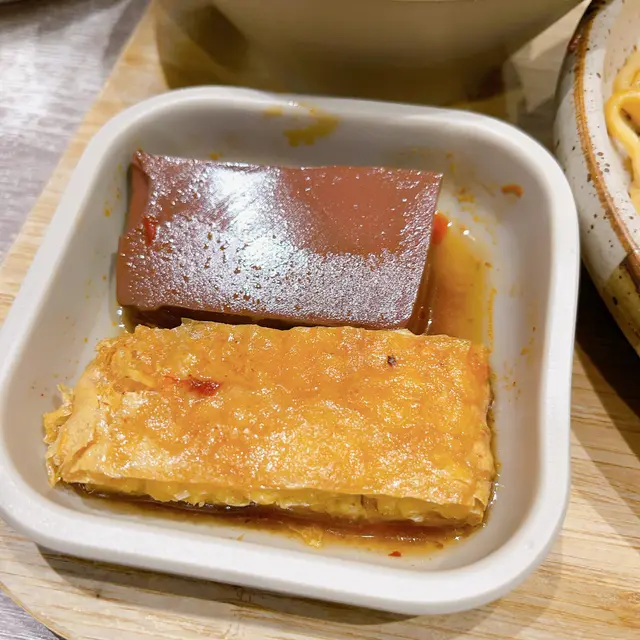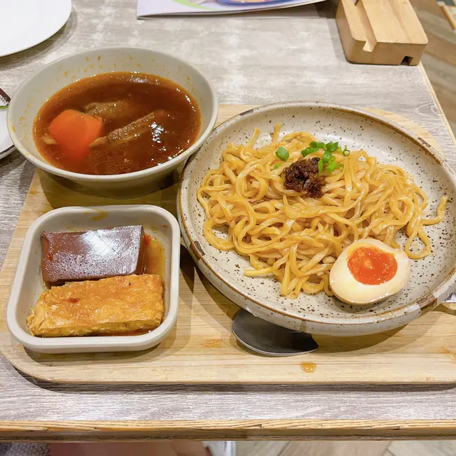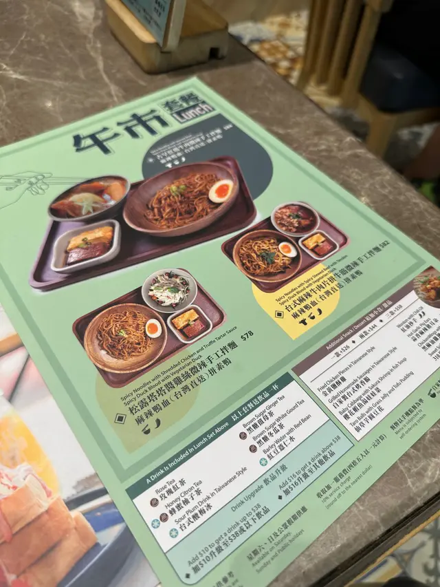 放工嚟食晚飯,要scan QR code 落單,一睇比實物餐牌貴咗,原來Apps自動要你加配甜品或沙律,算啦,反正都想試吓個奶茶奶凍。點左古早紅燒牛肉拌麵配鴨血拼素鴨、台式奶茶奶凍、抹香奶茶加奶蓋少甜、追加小食糖心蛋。古早紅燒牛肉拌麵,拼麵有少許麻辣味,都幾好味,有半隻糖心蛋。成碗得兩嚿紅燒牛肉、一件紅蘿蔔、一件白蘿蔔,呢個餐要$110,得兩嚿牛肉,未免孤寒咗啲。而且唔係切片,雖然牛肉都淋,但成舊咬啲牛肉攝晒牙罅,影響口感。配的鴨血、素鴨味道幾好。抹香奶茶加奶蓋少甜,仍然好甜,飲完好口渴。追加小食糖心蛋,呢個最唔抵食,味道Ok但$26 (仲要加一)得一隻糖心蛋🥲台式奶茶奶凍,賣相好吸引,味道都幾好。整體而言,味道都算OK,但埋單連加一總共$161,都幾貴,份量對不起這個價錢,男士吃未必夠飽。下次再來的話不會選擇晚餐,午餐好似平啲。查看更多
