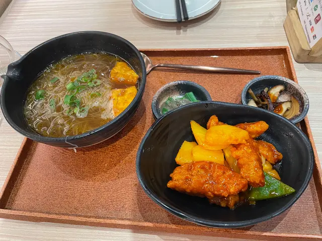不知是否今日落豪雨關係,人流特別少。午飯時段嘅樂富商埸,往往人來人往,坐冇虛席,今日竟然任君選擇,每間食肆都係得兩三枱客…哈哈,平時人多嘅茶木,可自由選擇位置。地瓜米線台灣嘅米線特別幼細,有彈性,好味。地瓜綿綿軟糯,甜美。菠蘿咕嚕肉非常惹味,酸酸甜甜勁開胃。咕嚕肉炸到外脆內軟,夠入味。豆漿好有豆香。竟然有一塊曲奇伴杯,搞笑。查看更多