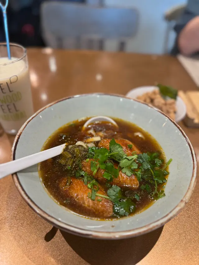茶木餐廳的黑麻油雞翅面搭配黃金鹽酥雞令人驚艷。雞翅入味鮮嫩,黑麻油的香氣濃郁而不膩,帶來滿滿的滿足感。配上黃金鹽酥雞,外脆內嫩,口感豐富。茶木餐廳的用餐環境雅致,服務周到,營造出愉悅的用餐氛圍。對於喜歡台灣美食的人來說,茶木餐廳的黑麻油雞翅面配黃金鹽酥雞絕對值得一試。lunch set 還有一大杯豆漿 只不過豆漿味道淡了些查看更多