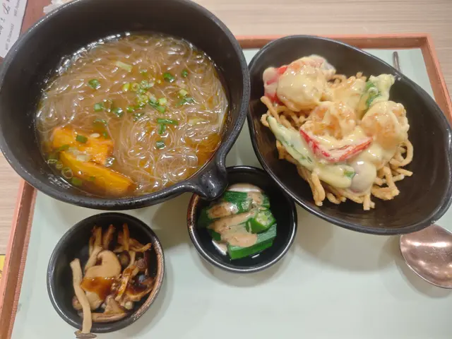此米粉配炸蝦球套餐製作精良。米粉幼滑彈牙,湯底清鮮帶微蝦香,配以青蔥提味。炸蝦球外層金黃酥脆,內裡蝦肉鮮甜彈牙,芝士焗香濃郁,與彩椒相配增添口感。配菜雜菌甜醬油香、秋葵沙律爽脆,層次豐富。整體清淡不膩,份量足,性價比高,適合日常用膳。查看更多