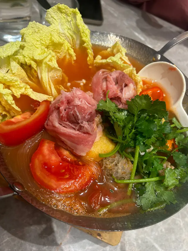 今次去咗青衣嘅茶木食火鍋,真心覺得幾唔錯,想同大家分享下我嘅感受啦!首先講下沙嗲火鍋湯底,啲沙嗲味道真係好香濃,好有層次感,入口有啲香辣但又唔會太嗆喉,飲落去暖笠笠,冬天飲最啱。火鍋料方面都幾新鮮,特別係嗰個黑醋味豬軟骨,炆得好夠腍,肉質軟滑又唔會過硬,好似喺口腔入面慢慢融化咁,有啲勞興住嘅感覺,食完真係好滿足。另外,蟲草花鮮菇湯味道清甜又滋潤,飲完覺得精神咗好多,呢啲天然湯真係幾有誠意。甜品方面我真係要讚下佢哋嘅pancake,好有特色,啲提子好香甜,配合軟綿綿嘅奶油鬆餅,好有驚喜感。不過芋圓就偏甜咗啲,建議大家可以慢慢食,唔好一次過食晒。配搭嘅紅豆薑茶味道恰到好處,薑味夠濃郁,暖胃又開胃。價錢方面就更加唔洗講啦,依家仲有由星期一至四嘅優惠,兩個人嘅幸福滿滿晚餐只係198蚊,包晒湯底、火鍋主食同甜品,性價比超高,真係抵食又好味。總括嚟講,茶木嘅火鍋湯底夠味夠香,食材新鮮,甜品夠特別,環境舒適,服務態度都唔錯,係同朋友或者家人聚餐嘅好選擇。下次想食火鍋,我一定會再嚟囉!你哋都快啲去試下啦!…查看更多
