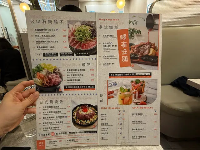 同朋友幫襯北角茶東西,裝修走木系簡約風,燈光幾舒服。餐牌選擇多到睇咗成分鐘先落單,今次試咗幾款招牌,有啲意外收穫。一上枱聞到淡淡柚子香,雞翼炸得金黃挺身。咬落脆皮唔會油淋淋,肉汁鎖得幾好,最驚喜係個柚子醬——酸甜清新得嚟帶少少蜜糖香,完全中和炸物滯膩感。我鍾意佢唔會淋到成隻翼濕哂,蘸少少已經好夠味。煎功值得一讚!餃子底脆如薄餅邊,面頭保持煙韌。豚肉餡剁得夠細,肥瘦比例啱啱好,咬開有微微肉汁滲出。旁邊配嘅一小撮沙律菜新鮮爽脆,夾件餃子食幾醒胃。上枱真係嚇親——塊漢堡扒厚過我手指公!表面煎得微焦,切開見到粉嫩肉色,咬落鬆化唔乾身。咖喱汁揀咗小辣版本,辛香味慢慢滲出嚟,撈埋半熟蛋黃同珍珠飯,食到最尾都唔會膩。鐵板滋滋聲上枱,芝士仲跳舞緊!牛肉片比想像中多,捲住半溶芝士同蘭王蛋黃,掛滿甜鹹平衡嘅壽喜燒汁。要讚佢牛肉冇筋,蛋漿撈飯滑溜得嚟唔水汪汪,雖然邪惡但忍唔住清哂。・熱情果多多梳打:果肉沉底要攪勻,酸甜夠氣,解膩一流・鮮果紅茶:杯底堆滿火龍果粒同蘋果條,茶底唔澀,果香自然唔似糖漿