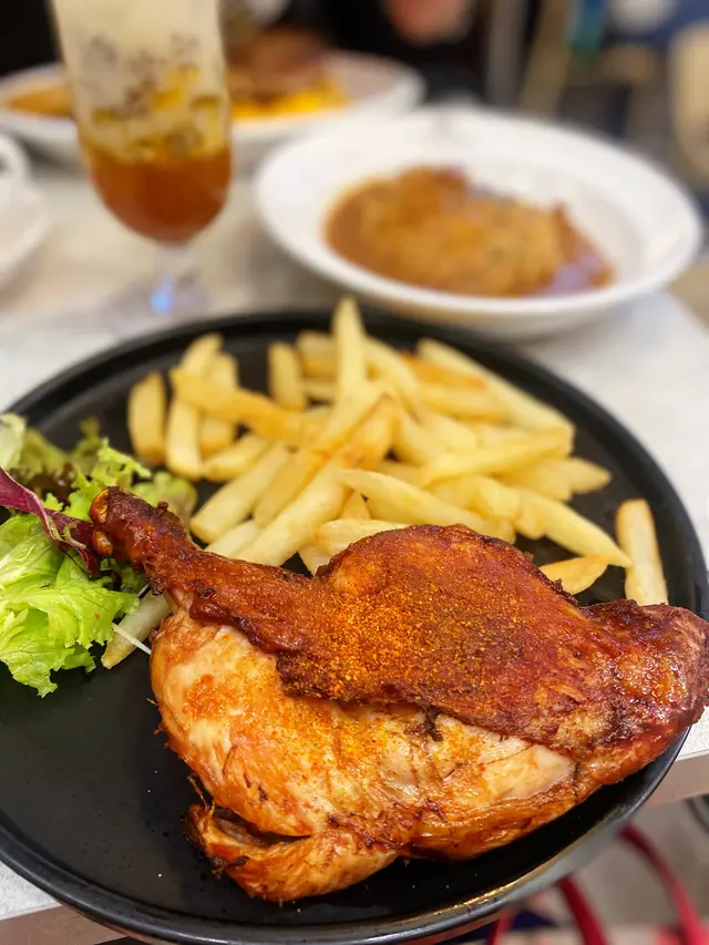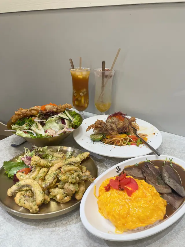 呢間茶記cafe位於繁忙嘅商業區,估唔到連假期都咁多人排隊‼️環境光猛,又有design,牆身掛滿Artwork❤️呢度嘅邪惡炸髀好吸引,「七味椒鹽炸雞髀」口味有幾款,仲有芝士醬、鹹蛋黃醬、柚子蜂蜜,不過我都係比較鍾意香口啲雞皮非常香脆,又夠椒鹽味,一切開有肉汁流出嚟,好好食,真係下午茶必選加配左「黑椒蘑菇飯」,係用珍珠米,瞬間覺得成個感覺提升咗重點係+$15就咁大碟,真係好抵,味道唔會太濃味,但又有黑椒香,個人覺得比KFC好食「安格斯牛肉漢堡北海道咖喱滑蛋蓋飯」北海道咖喱唔會太重香料味,味道比較清爽,咖喱質地唔會太杰,撈埋滑蛋&飯一齊食,味道更豐富漢堡扒一啲都唔鞋,煎得好香‼️查看更多