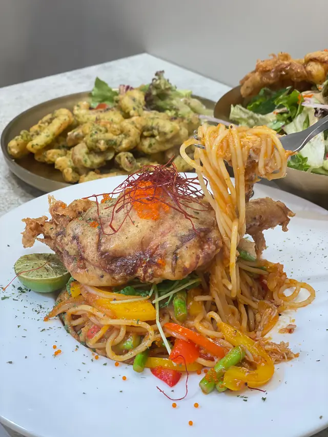 茶東西位於北角電氣道,佢係fusion茶餐廳有好多唔同款式嘅嘢食😚西式同日式都有仲有平時茶餐廳嘢食都有同朋友樣樣都想試吓🤣下次再去食其他野食,價錢亦都好相宜👍🏻✨ 冬陰功軟殼蟹意粉🍝$98意粉個汁辣辣地,好香,軟殼蟹好香脆😋另外加埋青檸汁,好開胃😍✨胡麻醬軟殼蟹沙律$88沙律菜好新鮮,仲有一大隻軟殼蟹 🤤✨唐楊魷魚鬚$58魷魚鬚有紫菜香味,好酥脆,份量好足夠✨ 甜咖喱牛脷蛋包飯$88有五大塊牛脷,整得好淋,好少日式咖喱會有牛脷選擇😋✨香橙鮮果紅茶跟餐加$15入邊有啲新鮮生果,都幾好飲,唔會好甜✨話梅柚子蜜糖梳打跟餐加$15好香話梅味,好特別仲好解渴📍餐廳名稱:茶東西 (北角)北角炮台山電氣道183號友邦廣場地下3-4號舖查看更多