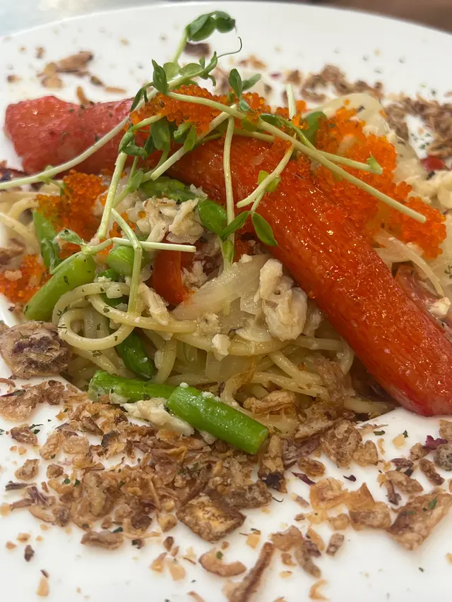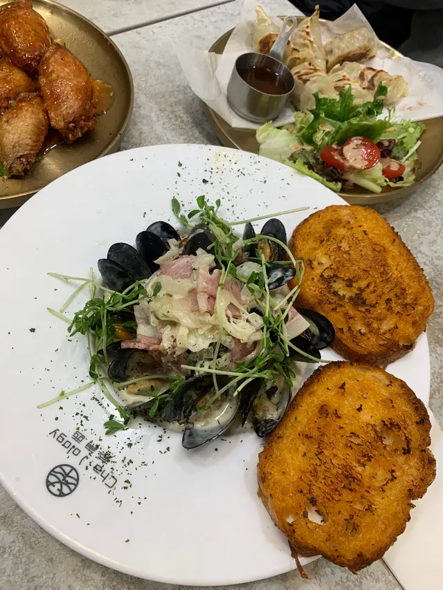 喜歡偏西餐的餐廳又帶點日式料理的菜,這次兩種都想食的情況下見到有不錯的菜款,於是立馬入內點了美國板键牛肉火山烏冬,超大份牛肉每塊都大個手掌,牛肉爽又吸滿湯汁味,哪裏有魚板娃娃菜芽菜木耳粟米腐竹等材料,烏冬彈牙。然後是白酒煮青口會蒜香酸種包,超有香蒜味的煙韌麵包,索上白汁後有照口帶勁,白汁奶香味重,有洋蔥煙肉芽菜辣椒絲等配搭,賣相漂亮又好吃。再來是蟹黃醬帶子什菌意大利飯,邪惡首選,濃烈又大份的蟹黃醬配白汁意大利飯超配,加上帶子軟淋淋的,白汁有均勻地分佈在飯顆分明中。配上粟米湯,食到粒粒粟米蓉的清新小湯,平衡了口腔。再來是日式胡麻醬軟殼蟹沙律,無論是蔬菜抑或是一整隻炸軟殼蟹,都超級大份量足料,最後再食中華沙律以及健康的玫瑰花茶,完美地結束一餐豐富的晚餐。查看更多