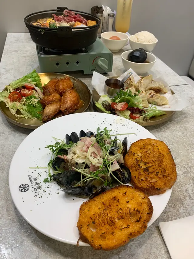 茶東西是一家位於炮台山電氣道友邦廣場地下,餐廳以漫畫故事裝飾牆身,氛圍獨特,菜式豐富多樣。叫咗幾款前菜。柚子蜜糖雞中翼,雞肉的鮮嫩與柚子和蜜糖的清新甜美完美結合。白酒煮青口伴蒜香酸種包,青口在白酒的烘托下釋放出獨特的海洋鮮味,每一口青口都飽滿多汁,湯汁濃郁而富有層次感。鹿兒島國產豚肉餃子,皮薄皮多肉飽滿,豬肉的鮮美與微妙的調料相得益彰。壽喜燒美國板腱牛肉鍋配珍珠米飯及蘭王蛋,牛肉在特製醬汁中快速涮煮,保留了其天然的肉香與柔嫩口感。鍋底的醬汁由醬油、糖和味醂調製而成,味道濃郁且甜鹹適中。安格斯牛肉漢堡北海道咖喱滑蛋蓋飯配甜咖喱,優質的安格斯牛肉製成的漢堡排煎至恰到好處,外焦裏嫩,搭配滑嫩的北海道滑蛋,形成豐富的口感層次,蓋飯上的甜咖喱濃郁。飲品,熱情果多多梳打,充滿了熱情果的濃郁香氣與自然的酸甜滋味,好飲。查看更多