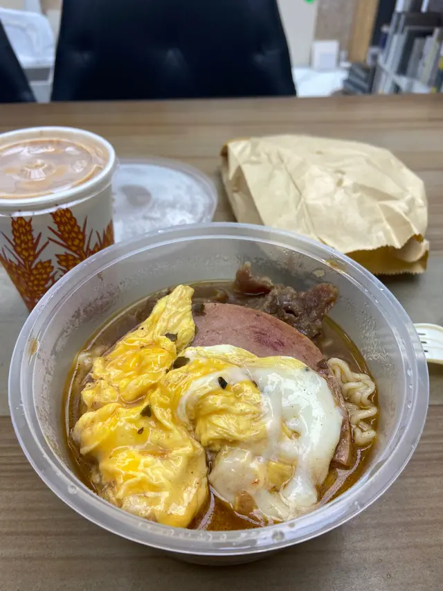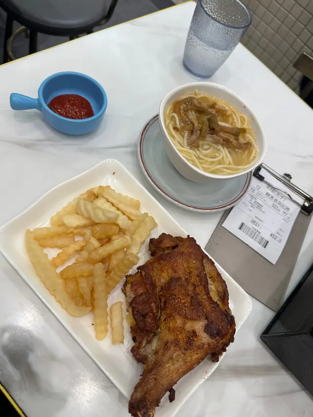 其實我平時跑完步都會嚟呢度食嘢可能我對常餐嘅滑蛋有感情大部分都係會點常餐今次點咗沙嗲牛肉通粉再加炒滑蛋呢碗湯底用雞湯,雞湯味道好濃而且滑蛋都係超出冀望咁滑另外我朋友都話炸魚外層又脆又薄,魚肉又厚又多汁,五十幾蚊就有塊大大塊既炸魚,薯條都唔錯,厚切之餘份量都多,食完真係好飽!午餐仲包忌廉湯同飲品,所以真係物超所值架!喺呢度食飯,真係港味十足,感覺融合咗舊與新嘅美味,下次一定會再黎打卡,試吓其他招牌菜!👍…查看更多