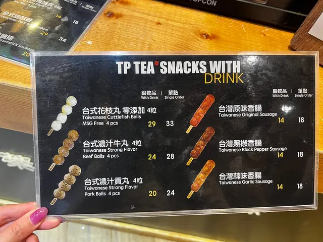 呢間係台灣飲品店 但原來佢最正係啲小食😋😋真係好正 我最鐘意爆汁牛丸 + 台灣腸好正啊真心如果你有買嘢飲 佢嘅小食會有優惠價大家可以睇返我影嘅餐牌🩵快啲去試下😊🥢查看更多