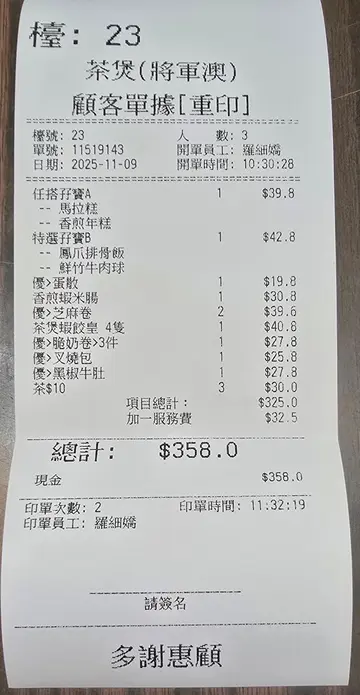 假日到朋友家探訪,朋友招呼我到她家樓下的港式茶室飲茶,朋友說點心是自家製,不是預製點心。鳳爪排骨飯~排骨嫩滑可口,白飯吸收肉汁和豉油十分美味,而且份量頗多,每人都吃了滿滿的一碗。 鮮竹牛肉球~牛肉球鮮嫩爽滑,鮮竹掛滿肉汁與喼汁,很開胃! 香濃芝麻卷~熱騰騰的芝麻卷,芝麻味香濃,口感帶點兒軟糯。 鴻運年糕~年糕色澤煎得像琥珀,味道清甜不糊口。 大良脆奶卷~外脆內軟,奶香綿滑,好吃啊! 醬皇金錢肚~~醬皇味道濃香不過鹽,與腍而不爛的金錢肚,兩者味道和口感都恰到好處。 香煎蝦米腸~蝦米腸脆而不油,我們都很滿意,如果喜歡吃濃味,可加豉油與其他醬料。原籠馬拉糕~我總覺得原籠上的馬拉糕是很有貴氣,品嚐到鬆軟、綿密及淡淡的甜香。麻脆花蛋散~麻脆花蛋散是我很喜歡的甜點,酥香、清甜、脆口,大大碟份量又可分享!真的多謝好友帶我吃到美味點心,價錢也實惠,預定下次再茶聚!…查看更多
