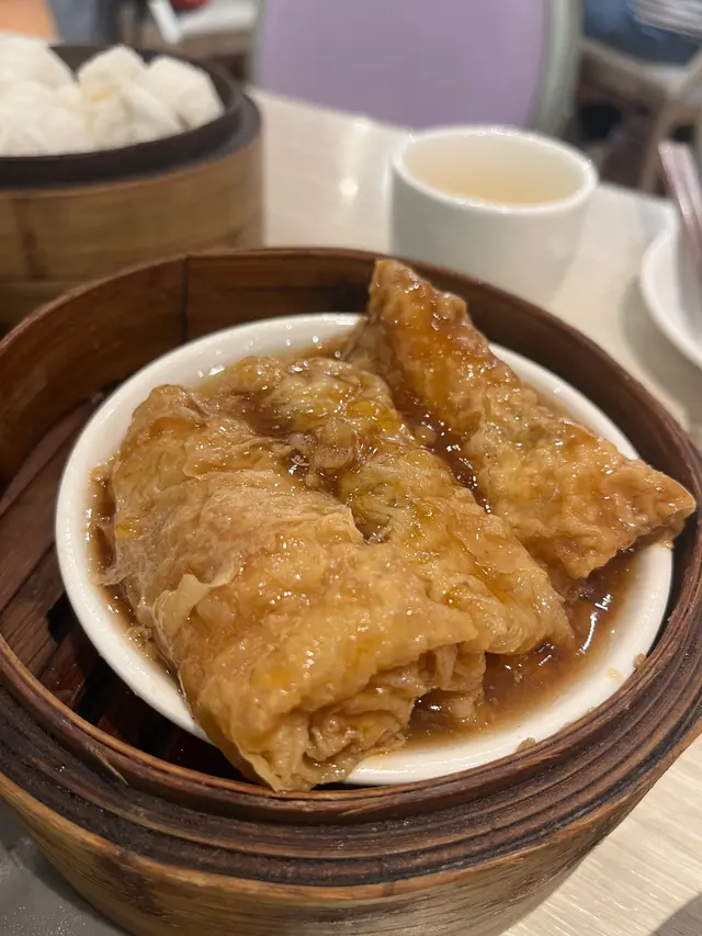 假日到朋友家探訪,朋友招呼我到她家樓下的港式茶室飲茶,朋友說點心是自家製,不是預製點心。鳳爪排骨飯~排骨嫩滑可口,白飯吸收肉汁和豉油十分美味,而且份量頗多,每人都吃了滿滿的一碗。 鮮竹牛肉球~牛肉球鮮嫩爽滑,鮮竹掛滿肉汁與喼汁,很開胃! 香濃芝麻卷~熱騰騰的芝麻卷,芝麻味香濃,口感帶點兒軟糯。 鴻運年糕~年糕色澤煎得像琥珀,味道清甜不糊口。 大良脆奶卷~外脆內軟,奶香綿滑,好吃啊! 醬皇金錢肚~~醬皇味道濃香不過鹽,與腍而不爛的金錢肚,兩者味道和口感都恰到好處。 香煎蝦米腸~蝦米腸脆而不油,我們都很滿意,如果喜歡吃濃味,可加豉油與其他醬料。原籠馬拉糕~我總覺得原籠上的馬拉糕是很有貴氣,品嚐到鬆軟、綿密及淡淡的甜香。麻脆花蛋散~麻脆花蛋散是我很喜歡的甜點,酥香、清甜、脆口,大大碟份量又可分享!真的多謝好友帶我吃到美味點心,價錢也實惠,預定下次再茶聚!…查看更多