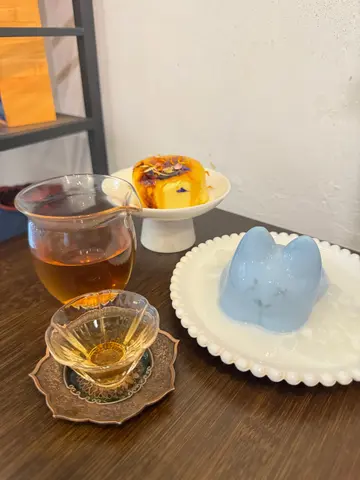 環境清幽, 舖頭裏面只有3張枱, 咁先至可以俾在座各位靜靜嘆茶🫖茶藝師介紹今日有咩茶飲; 先飲冷泡茶, 熱茶就二揀一;如無記錯, 冷泡茶好似係 “東方美人茶”, 味道清甜岩哂炎夏👍🏻 而熱茶好似係 “黃金綠茶” 同 “妃子笑” (有荔枝味既紅茶), 我揀左後者, 夠哂果香又甘甜, 好飲