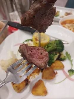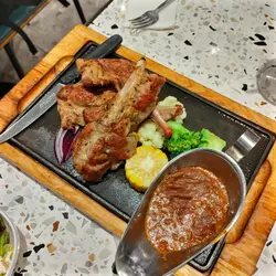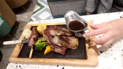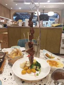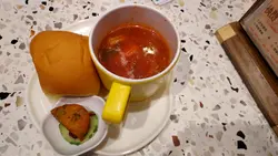 星期五放工同朋友出嚟吹吹水,到咗淘大商場搵嘢食,轉咗一圈揀咗食茶舍。七點幾嚟到幾乎全店滿坐,門口有人等緊四人位,好彩我哋兩位可以打尖入先,呵呵😝餐牌真係超級多選擇,西式、日式、港式等基本上包羅萬有,仲有甜品、特飲、小食,睇落樣樣都好吸引,叫咩好呢。⭐簡約晚餐頭盤叫晚餐附送的頭盤,是日餐湯南瓜湯配餐包,仲有半塊炸魚餅,另外仲有份菜沙律添,呢份簡約頭盤都好豐富喎。⭐板燒法式羊仔扒配香草蒜蓉汁朋友揀咗食鐵板羊扒,羊扒有三大塊全部厚切,肉質幾嫩,仲有少少羊騷味,個人覺得味道唔錯😋不過個蒜蓉汁就杰身咗少少,有啲黏口。⭐紐西蘭肉眼扒配照燒汁自己就揀得鐵板肉眼扒,塊扒有成十oz超大塊,鬆肉粉就梗係有㗎嘞,但唔算過份,肉嫩香口,個燒汁甜甜地又幾啱味😋⭐三重芝士焗西蘭花跟餐加小食有半價優惠,叫咗份芝士焗西蘭花,叫做食返啲菜開心啲嘛😆三重芝士真係幾正,好有芝士味,西蘭花配芝士真係好啱味。⭐千島海鮮薄餅朋友話佢要食返啲澱粉質又加咗個薄餅,揀咗千島海鮮口味,上面係滿滿嘅芝士,海鮮有蟹柳、魷魚仔等,啱啱焗起熱辣辣,餅底鬆脆極厚身,飽肚之選😝⭐仙草奶茶 & ⭐熱華田跟餐加特飲都有優惠,仙草奶茶幾好飲喎甜度剛好😋朋友嘅華田都ok。⭐蘋果芝士蛋糕最後仲叫左件芝士蛋糕自私食😆軟綿綿幾好食吖。呵呵,全部食晒無浪費,食飽飽好滿足。…查看更多