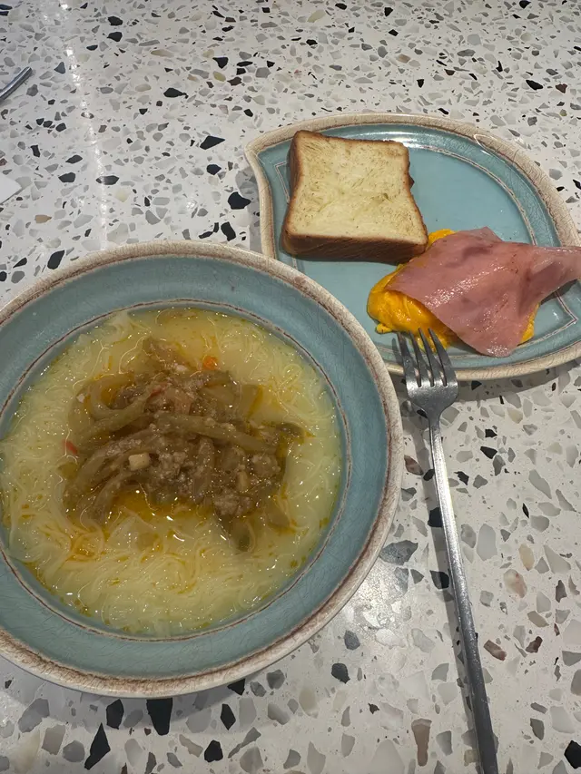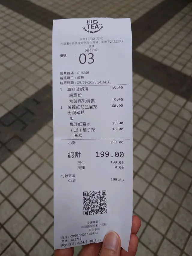 今日下就約左朋友在九龍灣食lunch,佢帶我去左間港式茶餐廳度食飯。餐廳剛過左午飯時間,所以唔多人。但到左2點,就見到好多街坊落黎食下午茶。餐廳餐牌選擇多,我哋就叫左兩個午餐包飲品,另外仲叫左份甜品。海鮮濃蝦湯扁意粉:蝦湯底算幾濃,唔太鹹,海鮮有蝦、青口、帶子、魷魚同菇,幾豐富,扁意粉掛汁力都ok,整體幾鮮味。菠蘿紅茄三重芝士焗豬扒飯:豬扒厚薄適中,唔會太鞋,幾淋。紅茄醬酸酸甜甜,菠蘿粒加埋芝士,夠晒邪惡。芝士唔算拉絲,但夠香,焗得微焦,飯底唔會太乾,合格。紫薯椰乳特調:紫薯味唔算濃,但椰乳夠滑,飲落唔會太甜。椰汁紅豆冰:經典之選,紅豆煮得啱啱好,椰汁香甜,冰凍透心涼,夏天飲一流。柚子芝士蛋糕:柚子味道清新,食落有啲似日式蛋糕,唔會太甜,ok喎。…查看更多
