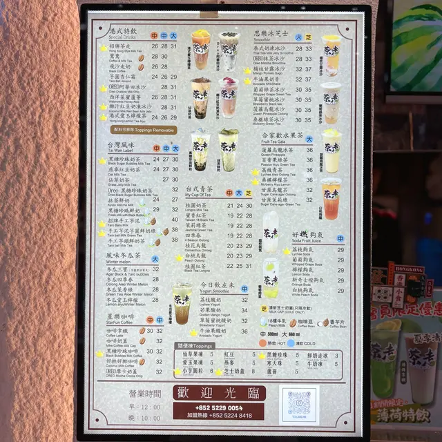 ⭐️🧋港式靈魂遇見手搖潮流🧋⭐️ lylyw等級42025-10-1143 瀏覽 關注 「茶走」係香港茶餐廳的術語——以濃香煉奶取代尋常用嘅淡奶,調出更醇厚、更絲滑的茶底。同朋友經開旺角買嘢,見到呢間「茶走」,心諗茶底應該有小心思,地道港味帶入現代手搖杯,幾得意,試吓先!店舖同時有幾款小蛋糕售賣,啱晒行街行到攰攰哋,喺鋪頭出面張掛牆式小長枱前,飲杯奶茶嘆個cake唞唞。眼見茶飲店仲有偶像明星佈置應援,撞啱係自己鍾意嘅明星應該幾開心!✔️黑糖珍珠奶茶$30煉奶入茶感覺真係順滑啲!而且煉奶和紅茶比例啱啱好,加上烤黑糖的焦香味,香香甜甜,作為奶茶愛好者嘅我表示不錯!✔️荔枝青茶$36荔枝清香和靚茶茶韻配合,杯底仲有新鮮荔枝肉,清涼解渴。✔️阿華田脆脆盒子$34充滿麥芽可可香的阿華田慕斯,與輕盈鮮奶油、軟綿綿蛋糕層層交疊,頂部仲有脆粒,有多重口感。✔️提拉米蘇$34近期最鍾意嘅甜品係提拉味素,真係去到唔同地方都要試吓。呢間嘅提拉米蘇都唔錯,可可粉的微苦正好中和甜品嘅甜度,不會太甜,奶香又突出。…查看更多+ 7以上食評乃用戶個人意見 , 並不代表OpenRice之觀點。讚好分享⭐️🧋港式靈魂遇見手搖潮流🧋⭐️ 茶走 https://s.openrice.com/QrbT0yE4l00檢舉 張貼 評分5味道5環境5服務5衛生5抵食用餐途徑外賣自取