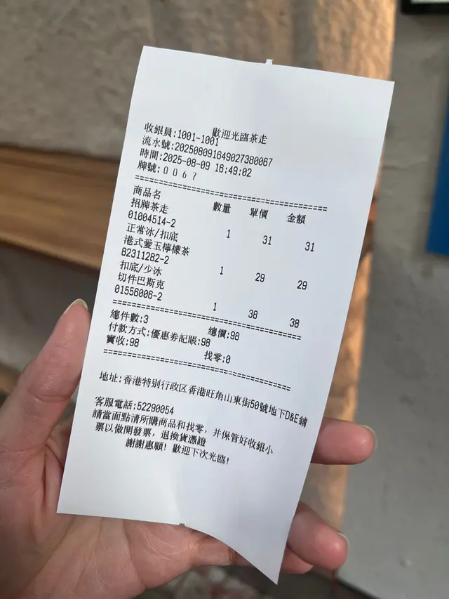 意想不到的驚喜 yoyopie等級42025-09-05120 瀏覽 關注 今日同朋友係旺角行街,經過呢間手搖飲品店覺得好特別,所以買左杯黎食先。順便食下佢個巴斯克蛋糕先。我叫左佢杯招牌茶走少甜少冰🩷🩷🩷🩷🩷佢個茶香味幾出色,飲到個奶味都幾順滑,好特別個茶味,同平時飲開既奶茶唔同左。我會比較中意佢呢個茶味。另外叫左杯白桃烏龍🩷🩷🩷🩷🩷佢個烏龍茶係向清香味,唔會太濃得黎個茶味有少少回甘,好正!再配埋甜甜地既白桃香味,夏天消暑飲一流。我哋再叫左個原味巴斯克蛋糕🩷🩷🩷🩷🩷佢個流心做得超好,同埋佢又唔會話太甜過滯,而且芝士味夠濃,同埋咬落去好綿滑。估唔到呢間飲品鋪啲甜品都做得咁出色,下次再食埋其他口味同埋試吓飲其他飲品先。…查看更多+ 7以上食評乃用戶個人意見 , 並不代表OpenRice之觀點。讚好分享意想不到的驚喜 茶走 https://s.openrice.com/QrbT0x45U00檢舉 張貼 評分5味道5環境5服務5衛生5抵食用餐途徑堂食