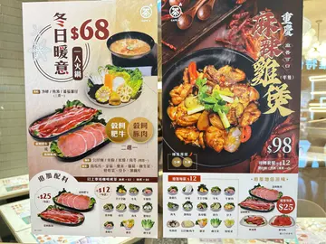 一人鍋份量, 有2塊豬肉, 3塊生菜, 2塊黃牙白2小件豆卜, 2小件南瓜, 二人份烏冬去到已經8點半. 有好多位都要我坐角落一人位肉唔夠想加, 問佢有幾片, 佢話一般有4片我回覆剛只有2片, 即時改口係跟大細, 話唔埋既可惜手機冇電影唔到相, 大家叫一人鍋前請三思…查看更多