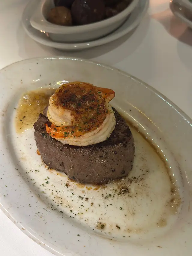 靜靜地搵個地方傾下計,簡單食啲嘢,老best聚會就揀咗呢間已經開咗70年(香港開咗27年)懷舊餐廳🥰餐廳係用咗深木色為主,懷舊得嚟非常乾淨,皮革依然保持得好好,而且空間感十足🪑點好餐會先上暖暖法包,配佢哋嘅牛油🧈真係一絕Sizzling crabs cakes 🦀呢個蟹餅係佢哋必點之一,上菜個陣仲聽到滋滋聲蟹餅外面有小小脆,直落一啖餅裡面肉好多,而且好彈,牛油溶咗係好香😋我欣賞佢哋用類似一個網袋包起舊檸檬,成件事好優雅😆16oz ribeyes 🥩with 4 shrimp 🍤 佢哋用嘅係USDA Prime cut,今次食嘅係medium,一上菜不得了,爆香,聞到番西同牛油味已經留口水🤤 蝦正常水準重點係本身店員會俾隻熱碟俾你,當你將塊牛放落碟會稍微加加個熱度,塊牛軟身,入口個下無得輸。記得快啲影完相唔好講嘢住,真係要快啲食,由於隻碟持續有溫度係度,慢慢牛肉就有7成,點熟度嘅時候要留意😉Steak fries 🍟 好特別嘅粗薯條,落咗啲rosemary,非常濃厚Cheese 🧀 berries唔係講笑,真係要大讚呢個蛋糕,真係有驚喜🤩 唔係平時食開嘅紐約芝士風,上面係鋪咗乳酪,真係好豐富,餅底唔會過硬,每層都好平均,就係啱啱好,一啲都唔會膩,搞到好想點埋其他蛋糕食Chocolate cake我係Openrice訂位,原來有寫明生日嘅話,餐廳會根據當日有嘅驚喜款出,可以寫到字,我哋今餐就食到朱古力蛋糕,又係好出色,即使比例上唔多朱古力,都已經好濃🫣 最最最開心係餐廳同我哋影咗一張相即曬返俾我哋做紀念😍 要大讚呢度服務一流,好多提議,我最欣賞夠老實,佢真心同你講邊樣相對上好食👍🏻 整體體驗好好,欣賞每一道菜嘅驚喜…查看更多