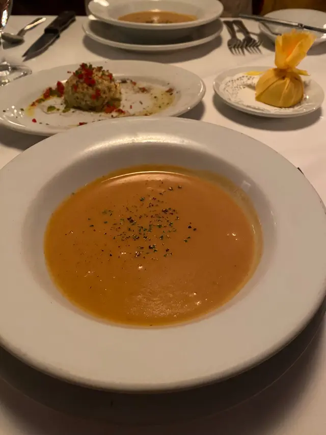 多年前光顧過,今次與友人聚舊再光顧。店內裝修依然貴麗,舒服,富懷舊氣氛。Lunch set 有六個選擇,叫咗六安士美國菲力牛扒及另外一杯紅酒。等左10-15分鐘左右,牛扒及紅酒一同送上餐枱,見牛扒外貌有啲特別,相機食先後,品嚐牛扒,依舊美味,十分滿意。紅酒亦有豐富熟香味道,絕配,亦有熱麵包。呢個午餐不錯🔹不過牛扒上枱時,有啲特別,不是一塊,而是兩塊🤔?是否chef 贈送?抑或先前唔夠六安士重量,後加?又抑或烹調期間,chef 切開睇吓熟未?無論點都好,呢個賣相,跟快餐店差唔多。所以希望餐廳高層留意一下。…查看更多
