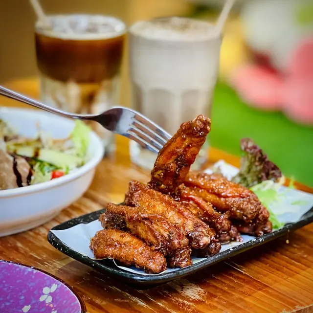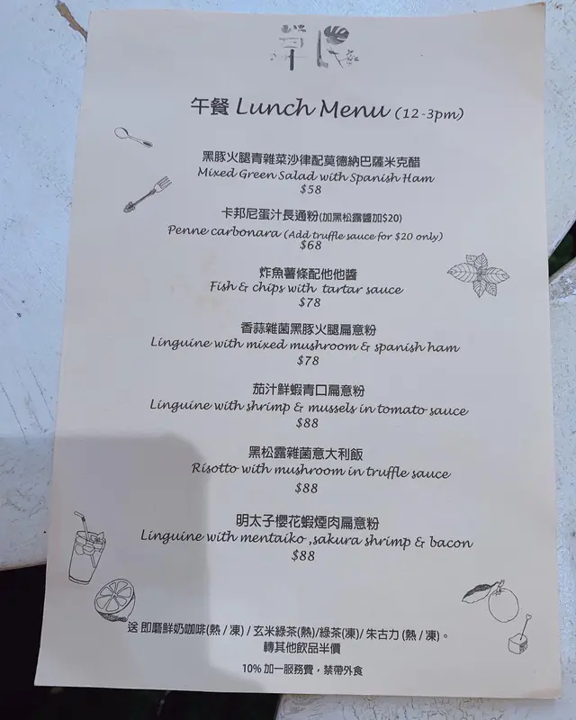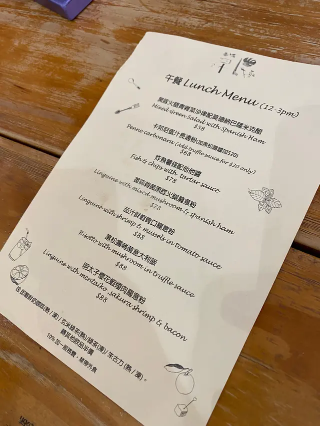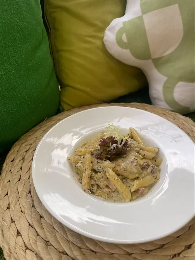 呢間小店最signature就係可以坐喺個草地度飲咖啡食嘢,可惜知道佢即將要結業🥲都想分享吓佢哋精心製作嘅嘢食🥲今次lunch time嚟到,雖然lunch set選擇唔算多,但都揀到我鍾意食嘅嘢😆我叫咗香蒜雜菌黑豚火腿扁意粉 ($78)~呢個意粉係偏向乾身,唔係好creamy嗰款,但扁意粉個質地好有咬口,香蒜味亦都係超濃,黑豚火腿都有唔少👍🏻配搭起上嚟好好食😋最正係呢個set有得跟朱古力,仲要唔洗加錢,冇諗過咁好飲~上面有個佢哋經典嘅公仔,杯朱古力係好香濃,上面奶泡好綿密,相當有驚喜😌愈來愈多出色嘅小店消失,希望呢間草民都會捲土重來啦🥲…查看更多