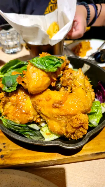 早1日訂位,平日夜晚嚟到,設90分鐘用餐時間。餐廳似逆市奇葩,平日仍持續有人排隊,不過幸好餐廳夠大,最後,我同朋友都可以坐耐啲。餐牌上的主菜/飯/意粉都跟餐飲,但飲品選擇少,只有冷/熱檸蜜、咖啡或黑糖薑茶,其他飲品及餐湯可-$8,各式甜品則+$30。以湯、飯/意粉、特飲同甜品咁計,連加一~$250/位。另外,仲可以+$30選配小食。牛肝菌湯:上菜時以茶壼裝住,由侍應席前倒入一隻放咗2小瓣牛肝菌的闊口茶杯;份量唔少;湯色飽和度高,入口亦濃稠,雖然頂多只係以蘑菇製成,但味道唔錯,鹹味適中龍蝦海鮮濃湯:上菜時冇牛肝菌湯的花臣;湯入面有海鮮料,如蜆;朋友話味道可以但冇乜特別羽衣甘藍藜麥雜菜沙律:+$30換的小食,份量竟然有啲睇頭,唔孤寒;配酸甜柚子蜜,開胃焦糖蕃薯條:+$30換的小食,份量大,滿滿的一桶;蕃薯條色澤金黃,入口香脆,表面淋咗蜜糖(但冇焦香),香口、好食,不過,餐廳竟然跟埋個蕃茄醬,配搭非常古怪荳子超級食物沙律:唔平,冇跟餐飲,唔抵食;顧名思義,食材係人所共知的各款超級食物,純素;沙律菜幾新鮮,牛油果略熟,味道尚算軟滑但已呈輕微瘀黑,藜麥、穀物的份量唔多,feta cheese正常,青蘋果、腰果只係點綴;全碟最好食係紫洋蔥,生食、好甜;沙律唔細份,但食飽就講唔上(飽肚的殼類太少)美式手打牛肉漢堡:幾個朋友share嚟;$170+只係咁真係幾令人失望;朋友冇話唔好食,我就試咗薯蓉同沙律菜,正常;個漢堡包好細,配菜佔咗隻碟的3/5,性價比低西班牙海鮮飯:同樣係朋友食,賣相可以,但飯量少,雖然如此,朋友都食剩1/4,話唔算好食千島醬海鮮薄餅:以為餐廳賣麵包,pizza應該好耍家,但當見到係厚批時真係好失望(個人喜好問題);薄餅的用料唔多,賣相麻麻,蘑菇片明顯係罐頭直出再放上餅面,焗製亦唔到位,焗完啲蘑菇仲帶濕,而且颜色蒼白,不過,薄餅單價唔高,如果想點樣嘢食飽個肚,可考慮Tiramisu:同朋友點咗4款甜品,呢款最好食;朋友本身唔想點,話太細杯,的確係,幾個人分,每人1匙;質感軟滑,有酒香特濃開心果杏仁蛋糕:喺餐廳門口見到凍櫃display,朋友已經話必食;送到上檯,覺得佢勁迷你;味道方面,1個字:伏!蛋糕唔好食,冇開心果味,開心果碎「淋」曬;未食過咁差的開心果甜品美式特濃朱古力軟心蛋糕:大件夾抵食,尺寸大到嚇一跳,1-2個人唔太建議點,3-4人就好適合;有香濃朱古力味(未到「特濃」),朱古力忌廉同朱古力海棉蛋糕層層相夾,食完會「漏」但滿足到想食甜品的慾望卷。奧樂蜜C蜜糖檸檬:擺盤有心思,蜜糖伴碟,味道香甜;卷蛋入面的檸檬味忌廉同檸檬果凍令層次豐富咗,同時亦中和到蜜糖的甜味,值得一試f熱鮮奶拿鐵:好飲,雖然一杯的份量唔多,但咖啡味香濃亦有奶香(加$3轉十字鮮奶),不過,呢啲都關乎咖啡師的手勢,因為喺Beans將軍澳分店都飲過淡而無味的咖啡食完就明點解餐廳可以逆市吸客:(1)環境:枱與枱之間有啲距離,座位舒適,餐廳溫度適中,坐得舒服;(2)服務:侍應的服務態度非常好,有求必應、冇甩漏,部分侍應好年輕,態度亦好,動作勤快,每次飲完水時,侍應會主動斟水,亦好頻繁地清碟;(3)食物:但凡加錢的食物、飲品水準唔錯,份量唔細,哪怕只係小食,賣相都令人impressed,不過,主菜係有啲「搶錢」。如果2個人嚟,不妨點1個餐,然後加餐湯、小食、甜品,轉特飲,再單點多1杯飲品同甜品,計落~$160/位,性價比高啲。…查看更多