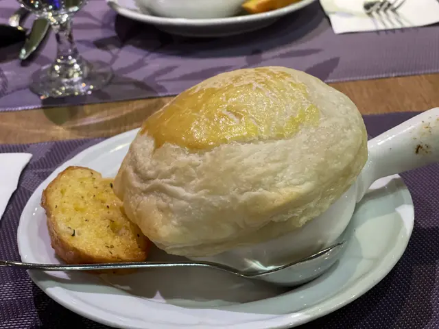 Lunch set 可以選其一個前菜 分別叫左兩個set 我叫左 白汁忌廉周打蜆湯 同 炸春卷 湯有驚喜,濃濃既湯充滿牛奶和忌廉的香味。法式焗田螺已經唔係好多地方有得食,就算有都係啲肉勁細粒,食完都唔覺自己食左咁既,但呢到個法式焗田螺俾到回憶我啊,係以前食到既味道同口感,大粒有口感,田螺肉入口鮮甜不失爽嫩,底部的薯蓉🥔更是無得彈 跟住就食 蟹肉醬配蒜蓉包 試食野個醬好,點啖蒜蓉包外脆內軟陣陣蒜蓉焦香,濃稠惹味, 香氣十足而芝士三重薄餅 #芝士控必食 個餅底係用薄餅底脆卜卜 牛扒5成岩岩熟夠嫩口…查看更多