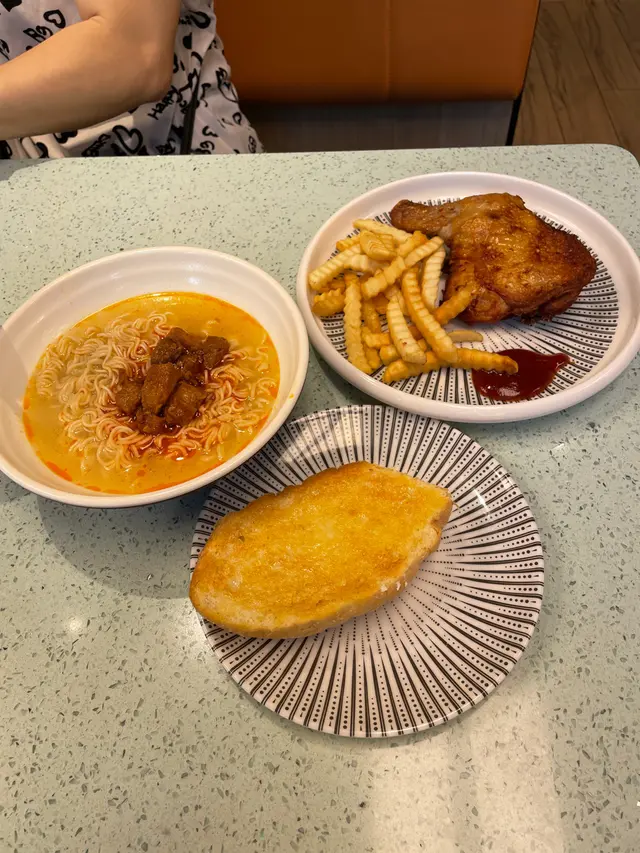 地點方便,喺葵盛商場地下正門隔離叫咗星洲豬頸肉炒河$50 ,送熱飲,加$3轉大杯。河粉即炒,味道幾好,唔算太油,份量唔算多,下午茶嚟講OK啦,不過冇食lunch就覺得仲係好肚餓豬頸肉見到有燶邊,睇得出唔係炸嘅,估計係用電爐燒烤。整體味道都唔錯,唔算鹹。熱奶茶就好普通,茶色太濃,加完淡奶都係唔夠滑。飲到最後條脷係澀嘅,質素比以前差咗好多。坐喺窗邊卡位,見到有隻迷你小強喺地下爬過, 20幾年公屋屋村,不意外🤡…查看更多