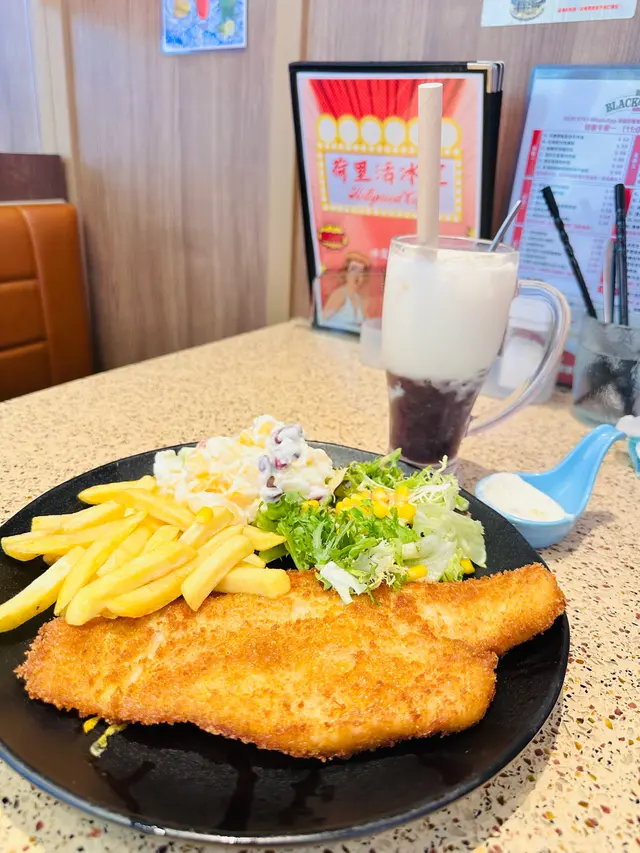 前排突然好想食酸菜魚,原本諗住搵間川菜館,點知行過荷里活冰室,見到佢menu竟然有酸菜魚!😲 一間茶記有咁特別既菜式,真係好吸引,於是我同朋友即刻入去試試,睇下呢間茶記點樣將酸菜魚整出新火花!🍲.招牌酸菜魚 $99招牌酸菜魚一上枱,已經聞到陣陣酸辣香氣,湯底呈金黃色,望落就知好有料!😍 湯頭酸度同辣度岩岩好,酸菜既酸香同辣椒既微辣交織,飲一口暖胃又開胃,味道濃郁但吾會過鹹,仲帶點清爽既回甘。魚肉超多,片片都厚實鮮嫩,入口滑溜,咬落去完全無腥味,仲有陣陣湯汁既鮮味滲出,超滿足!🥰 配料方面有芽菜、腐竹、木耳同蓮藕,芽菜爽脆、腐竹軟滑吸湯、木耳彈牙、蓮藕帶點粉糯,每款配料都吸晒湯底精華,層次好豐富。而米線Q彈有嚼勁,掛湯能力一流,每條米線都浸滿酸辣湯汁,食落每啖都係精華!份量仲好大碗,2-3人share都絕對夠!套餐仲包埋熱飲,轉左凍奶茶(+$3),奶茶香滑濃郁,茶味同奶味平衡得好好,飲落去同酸菜魚既刺激口感形成完美對比!🥤.薑粒菜圃炒飯 $58薑粒菜圃炒飯真是一個驚喜發現,吾係間間茶記都有呢款炒飯!😎 炒飯粒粒分明,乾爽吾油膩,入口即化又帶點鍋氣。薑粒既清香同微微辣味係靈魂,咬落去帶點脆口既質感,配上菜圃既鹹香同微脆,味道層次即刻提升!蛋花軟滑,菜心粒爽脆,兩者點綴炒飯,增加左口感既豐富度。整體炒飯好香口,比一般炒飯有性格得多,食完一啖即刻想再食下一啖!😋 加配左杯凍檸檬(+$6),酸甜清新,檸檬既清香同炒飯既濃香好match,解膩之餘仲令人胃口大開!🍋.炸雞中翼 $30炸雞中翼係茶記小食既經典之選!外皮炸得金黃香脆😍 雞翼皮薄而脆,帶點鹹香同微辣,味道惹味但吾會搶左雞肉本身既鮮味。.丹麥多士 $12外層金黃酥脆,內裏軟綿綿,帶點奶香同蛋香,簡單得黎好滿足!入口即化,奶香同酥皮完美融合,甜度岩岩好😍…查看更多