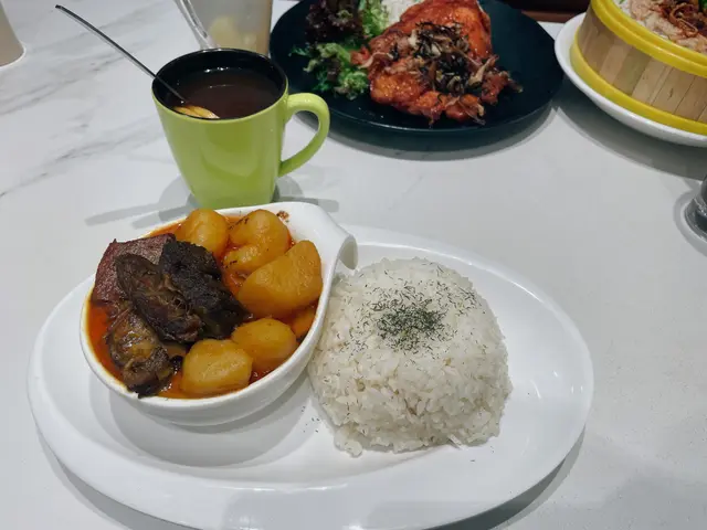 最近試了一家很適合打工仔的快餐店,最大賣點是上菜快到飛起,適合中午得一個小時休息的上班族!這次試了兩款主菜:1.葡國雞皇飯的醬汁濃鬱,雞肉嫩滑,但整體味道偏安全,不算特別出眾。2.山賊黑椒雞扒,還有配肉醬意粉、羅宋湯、胡麻雜菜沙拉、火腿奄列和丹麥奶油多士/牛油方包。 黑椒味夠突出,雞扒汁多但略為普通,不會有太大驚喜。配菜中,肉醬意粉和羅宋湯都是中規中矩,胡麻雜菜沙拉清新開胃,火腿奄列和牛油方包就略為平凡,沒有什麼特別之處。但大大碟,適合超級肚餓既打工仔食!上菜速度真的要給滿分!從點餐到上菜不用10分鐘,對於時間寶貴的人真的是一大加分。價格也很合理,一份套餐連主菜和這麼多配菜,性價比高,絕對是打工仔午餐的好選擇。…查看更多