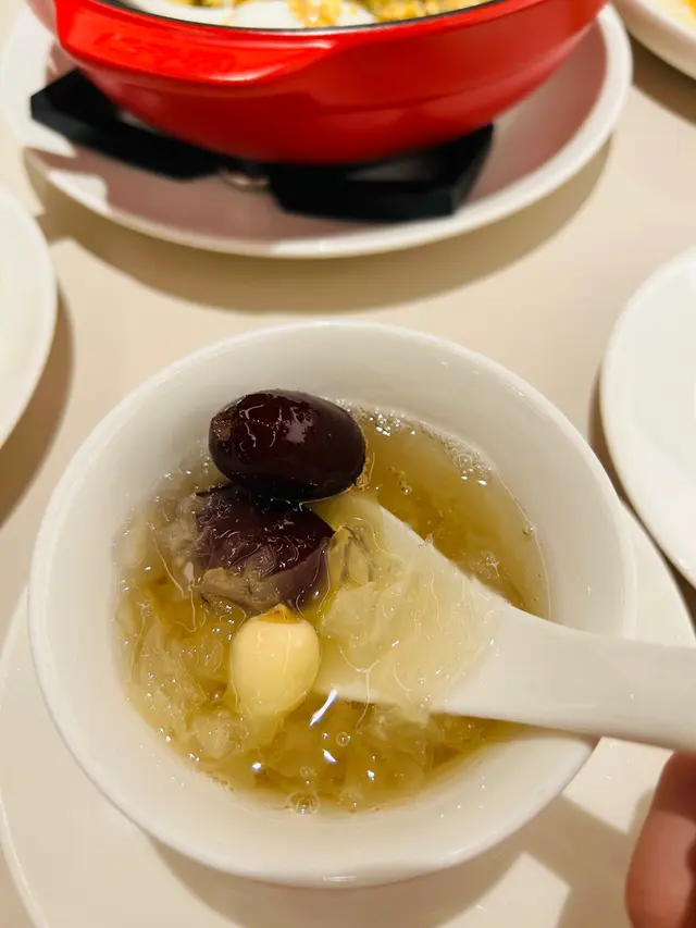 鐵板鹽焗蟶 & 蒜蓉煎海蟶 & 黃金荷葉包 & 芋泥香酥鴨 & 鹹香黃花魚 & 石鍋滑豆腐 & 薄荷枇杷凍 & 酥炸冰心榴槤 & 紅毛榴槤汁