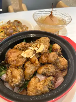 🎊又嚟到莆田年度的鰻魚節🎏✅嚴選來自順德鰻魚之鄉的「出口級」鰻魚🐟以鱈魚粉餵養, 口感更肥嫩推出6️⃣款不同煮法的鰻魚菜式💧原汁原味的水煮, 蒜香蒸焗, 特色脆炸, 各有風味😛🥳🫖茶位: $18/位🔸黑金蒜燒鰻魚 $168 7/10🐟鰻魚約7-8件, 肉質厚實爽彈蒜香醬帶微甜, 好驚喜, 伴菜有淮山片🤣🔸蝦苗頭水紫菜 $58 6.5/10頭水紫菜搭配米醋和紅尾蝦苗🦐口感脆嫩, 酸甜開胃, 是個不錯的開胃小吃😌🔸白切羊肉🐑 $158 6.5/10羊肉肥瘦適中, 帶羊獨特的香膻味🔸金湯時蔬🟠 $88 6/10🟠添加咗鹹蛋黃的高湯, 金黃鹹香湯底較杰身, 莧菜份量足🥬🔸興化炒米粉🥢 $118 7.5/10☑️選用幼細如絲的興化米粉, 爽彈不軟爛配料很足, 十分豐富同蝦仁, 蜆肉, 鹹肉, 蔬菜等一齊翻炒最後加入湯汁, 米粉吸收哂精華, 好入味😋…查看更多