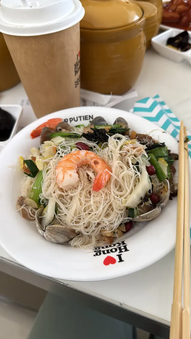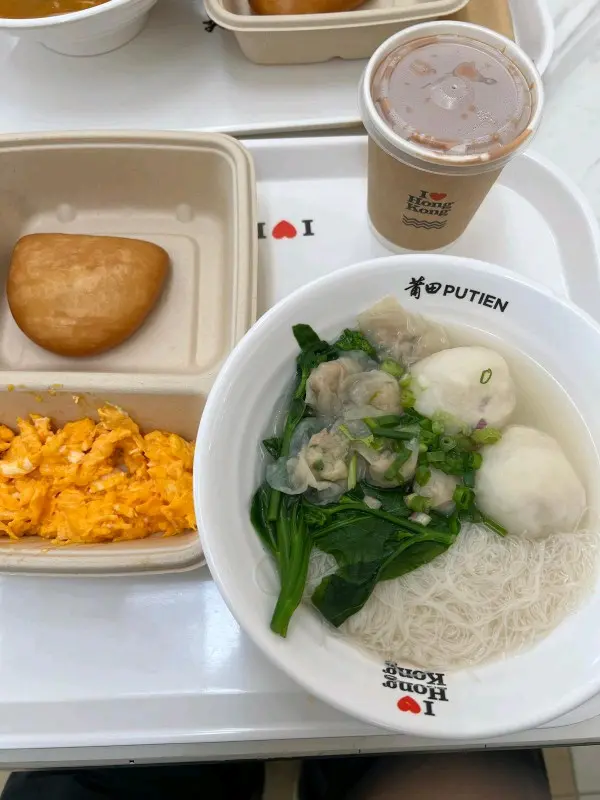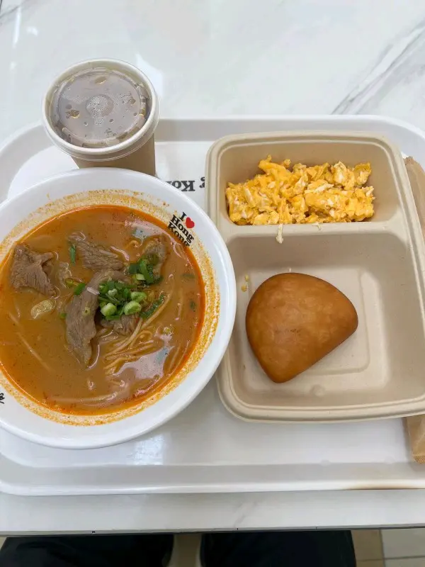 去旅行坐飛機啦! 登機前, 要食飽飽! 禁區內的美食廣場,有几家餐廳提供早餐。 大部份是香港特有的ABC早餐。 最後選擇這家福建菜大品牌的嗲牛系列。沙嗲牛肉米粉不喜歡即食麵, 所以轉米粉。米粉幼細,是否這品牌的興化米粉? 奶白湯底非一般的沙嗲湯底, 反而似叻沙,辣為主。幼細的米粉易掛汁, 為了減辣,唯有待每匙米粉滴乾湯汁才享用。牛肉,都交給朋友享用。炒蛋荷葉包炒蛋 全倒在沙嗲湯裡加熱, 慢慢吸收香濃湯底。荷葉包=炸饅頭 外脆內軟..奶茶 早已放涼,嚐不到茶香。 食飽飽了! 預備登機,可以安心睡覺! …查看更多