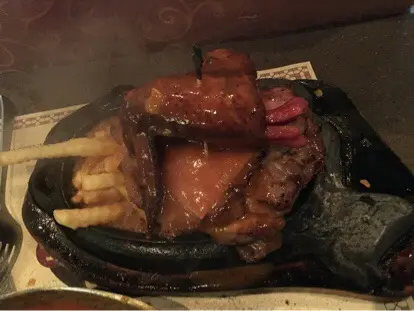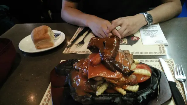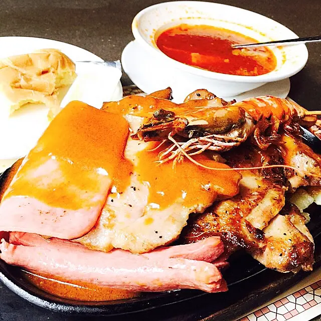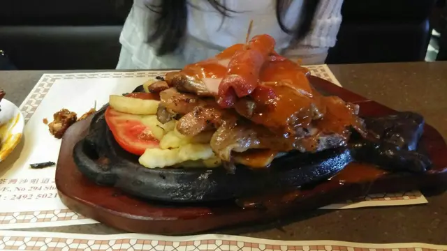 話說琴晚七夕情人節,老公就話出去吃餐二人世界飯!因為帶阿B去街既話,根本不能据下扒,所以就趁機會去下莎樂美!老公叫左份什扒,賣相幾吸引架,大大份咁,仲幾有氣勢咁,但老公食完好失望,得豬扒係食得落,其餘雞扒有雪味,腸仔係無味,牛肉粒只係一餅肉咁!失敗!我就叫左份西冷,上枱又係幾靚,食落口無咩牛味,好失望呀!賣單成三百幾蚊。。。若果好味都ok,但最慘係半夜勁肚痛,訓訓下醒左,唔敢話俾老公知,今朝肚痾到七彩,老公都係