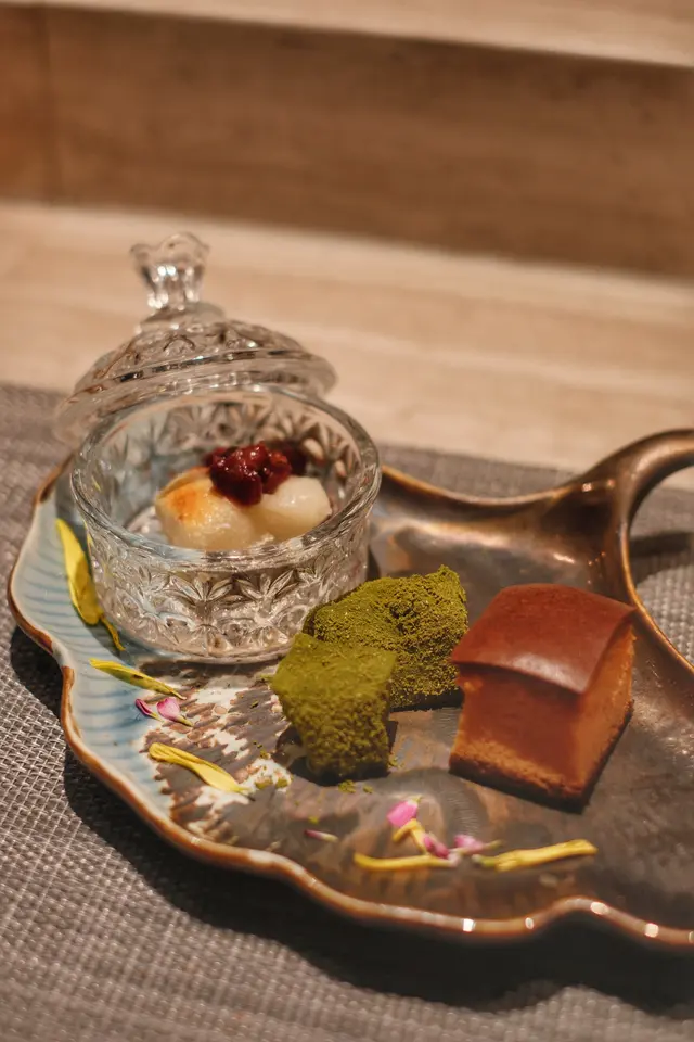 Omakase 焰月套餐($980)20道精緻菜式🔅服務非常細心😍,上每一道菜之前,師傅都會細心解說材料及食法☺️,店員亦都會問你有啲乜嘢唔食,有啲乜嘢會敏感相當細心🔅除左omakase之外,仲有鐵板燒添👍🏻🌟先付*醋積水雲醋味再融入帶子,可以將帶子鮮味再加倍突出*靜岡水果蕃茄.河豚魚皮.豆腐三樣同樣出色.最出色嘅係河豚魚皮👍🏻🌟季節刺身*北海道八爪魚🐙配佢哋嘅特製啫喱,銀煙韌煙*日本象拔蚌刺身兩款做法,有火炙,同刺身同樣做得出色*日本石斑配海苔汁非刺身,煮得剛剛好熟,好滑😋😋*北海道鱈魚白子口感細嫩,鮮甜,入口即溶配柚子汁,冰菜一齊食*北海道香箱蟹乸(二選一)完全係手工藝品拆肉,在砌返隻蟹度*煙燻大吞拿魚腩(二選一)再加紫菜紫蘇葉同中拖羅一齊食口感超豐富😋🌟梅子素麵*食落去感覺份外清新🌟手握壽司*赤貝*北海道右口魚*北海道獅魚*九州池魚每一款都各有特色,重點夠新鮮🌟手卷吸物*北海道赤馬糞海膽海膽鮮味十足*野生油甘魚配日本生菜成手卷好特別嘅手卷,同樣有油香味😋🌟鯛魚湯湯*熱辣辣暖胃🌟同時令果物*玉子燒鬆軟濃香.抹茶蕨餅.紅豆年糕…查看更多