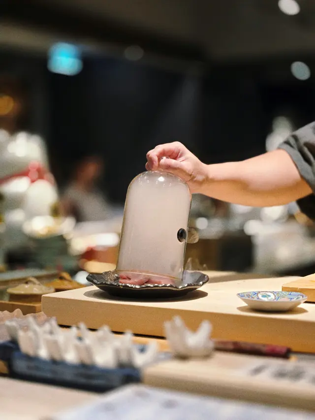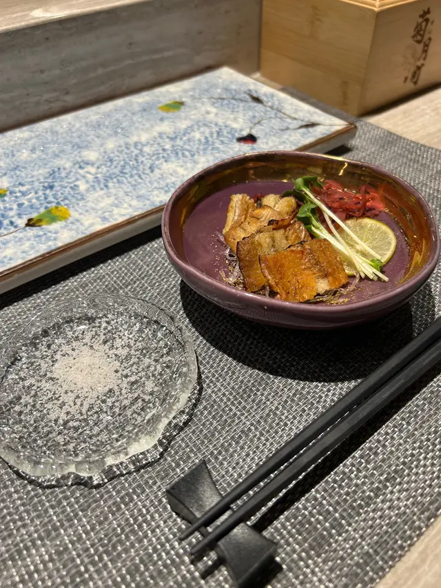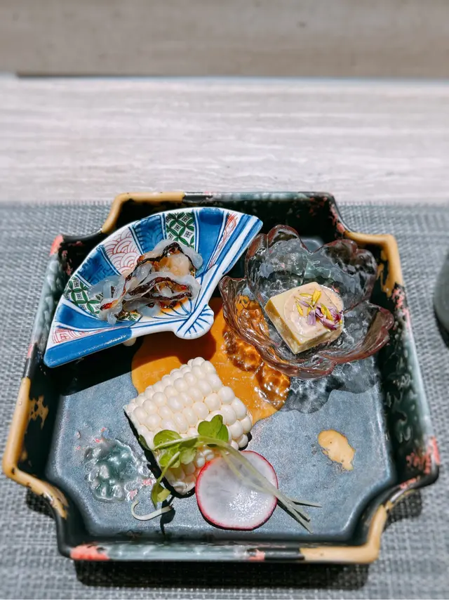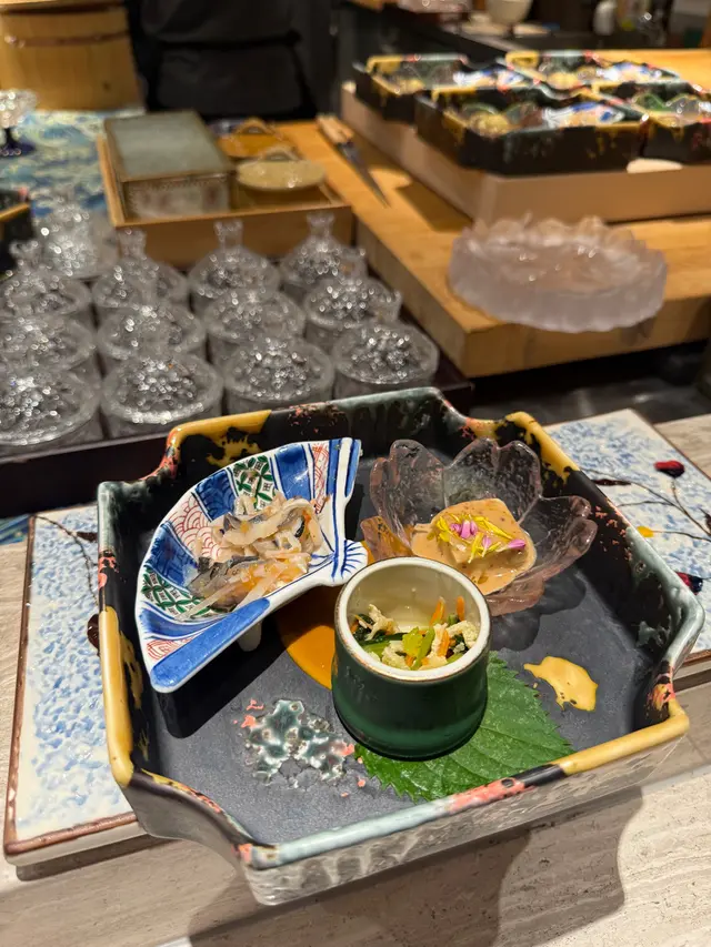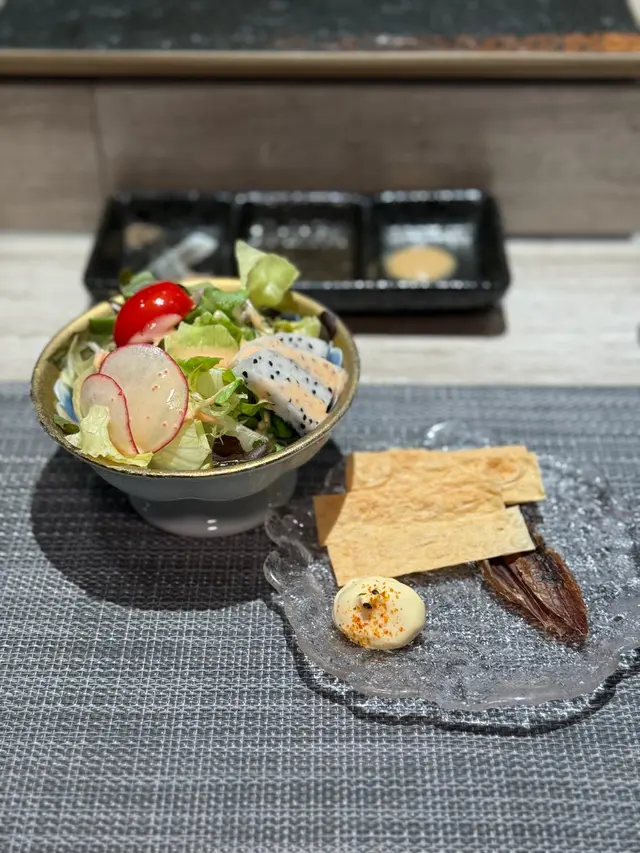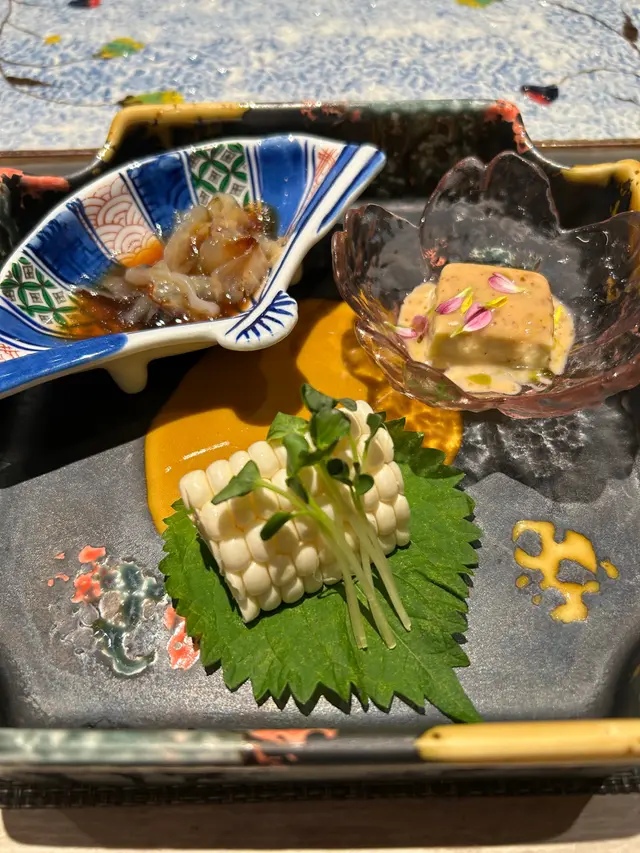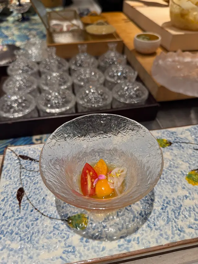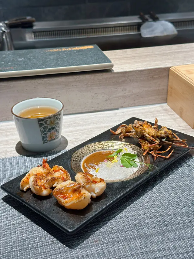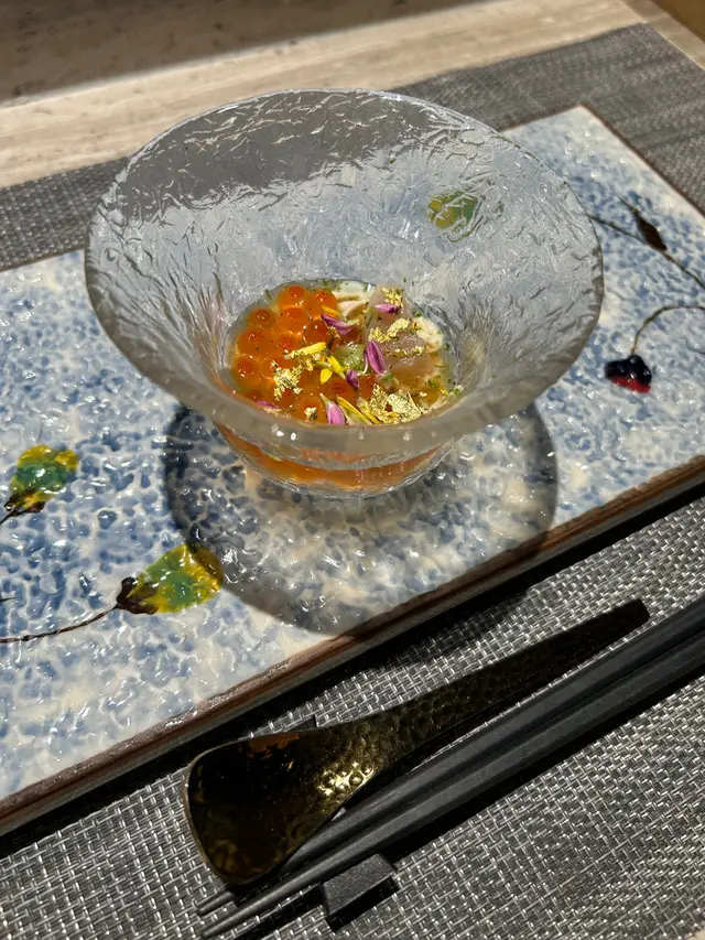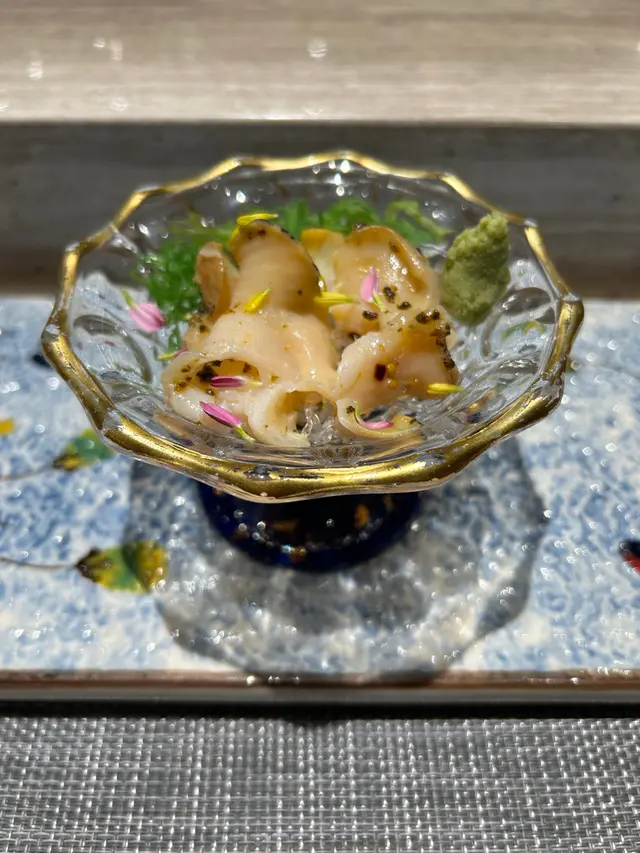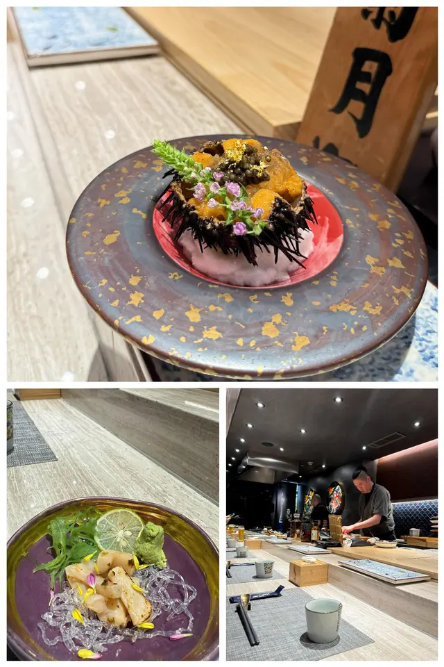 🎇 焰月套餐 ($980)20道精緻菜式,涵蓋先付、季節刺身、手握壽司,手卷吸物同時令果物一踏入菊月町立即被店內嘅雅致氛圍吸引今餐由興師傅親自主理,開餐前仲會細心問客人有無唔食嘅嘢,非常貼心套餐以湯葉揭開序幕,三文魚子、北寄貝貝柱位同腐竹嘅組合,綴以金箔點睛,視覺與味覺兼得。三文魚子嘅鮮鹹同腐竹嘅清淡相得益彰,北寄貝嘅爽脆口感更係錦上添花跟住係前菜,有清甜爽口北海道白粟米,配上豆苗用嚟清新口腔;水母刺身以柚子醬油提味,酸香突出,慢慢滲出醬油嘅鮮美;蟹膏豆腐濃香嫩滑北海道厚岸生蠔肥美多汁,海水味淡雅,搭配酸汁啫喱同海葡萄,層次豐富粒貝(日本響螺)以麻油和鹽輕調,爽脆有嚼勁,點綴少許wasabi更添風味燒鰻魚灑上山椒粉,酥脆不膩,搭配海藻鹽食用,完美化解微微苦味北海道喜知次先蒸後炙燒,魚皮香氣撲鼻,肉質嫩滑,魚油濃郁,配以芝士甘筍汁及烏魚子,甜美與鮮香交織,正大拖羅赤身係焦點,師傅即場以蘋果木煙燻,大拖羅灑上海藻鹽炙燒,赤身則刷上醬油與wasabi,搭配紫菜、沙甸魚乾同紫蘇葉,油脂同清爽完美平衡,口感層次令人讚嘆梅子素麵粉嫩誘人,淡淡梅香開胃又清新池魚爽脆鮮甜,柚子醬提升鮮味赤貝細嫩鮮美,青檸增添層次感甜蝦別出心裁,師傅將蝦肉剁成蓉,加入昆布製成漬物,鮮味濃厚,肉質彈牙梭子魚連皮炙燒,魚油滲入壽司飯,甘香無比,柚子胡椒平衡油膩感,令人回味鯖魚搭配少見的芽蔥芽,清香與鮮味相輔相成,視覺與味覺雙重享受馬糞海膽手卷亦係亮點之一,師傅毫不吝嗇堆滿海膽,獨特包法讓每一口都食到海膽,令人滿足鯛魚湯代替常見嘅味噌湯,湯底濃郁醇厚,鮮味十足甜品同樣用心,蘭王蛋長芋玉子燒鬆軟濃香,香蕉雪糕最中清甜可口,抹茶蕨餅煙韌帶綠茶香,完美為這呢場盛宴畫上句號餐廳除左omakase之外,仲有提供鐵板燒選擇,已bookmark下次再訪…查看更多