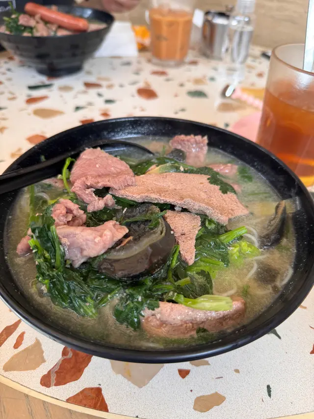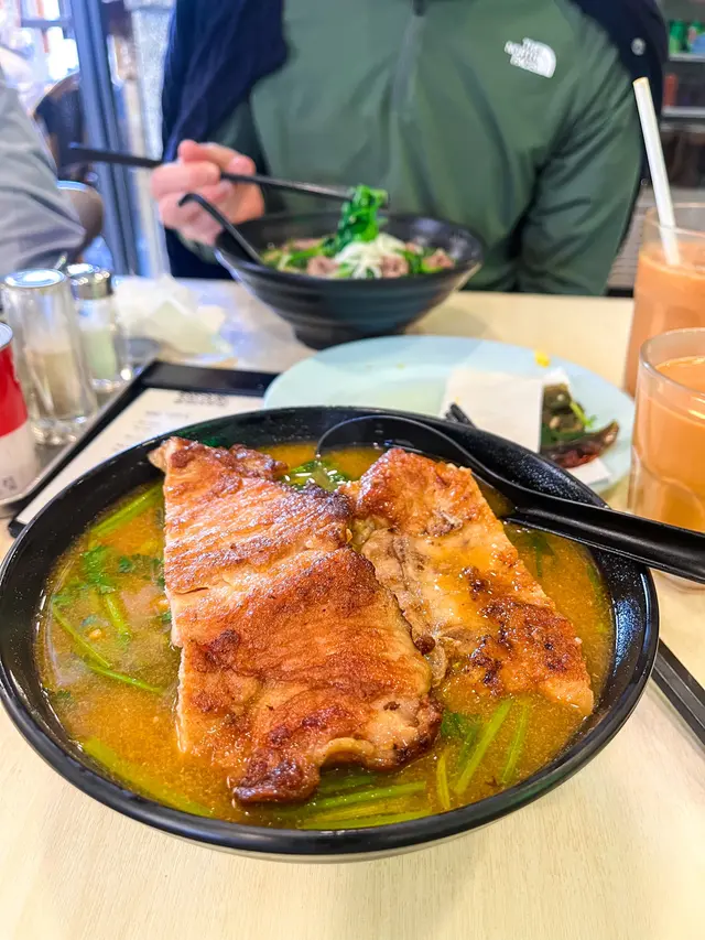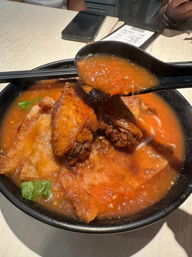 平日想搵間泊到車既地方食頓簡單午餐,華嫂冰室絕對係熱門之選。一到現場,就即刻感受到人氣爆棚的威力,好多人排隊等位。餐廳室內有冷氣的位子比較少,室外位反而好多,有風扇吹。至於能坐室內還是室外,完全看運氣,純粹考驗你今天的手氣如何。如果你想室內都可以,但要等位等更耐,建議食客們早點出門,或者可以避開午市高峰,否則要等好耐位。我們點了兩款招牌蕃茄湯通粉第一款「豬扒雞翼蕃茄湯通粉」湯底濃烈蕃茄味撲鼻而來,湯底比較濃,酸甜平衡得啱啱好,豬扒好大塊,外脆內嫩,雞翼咬落多肉,整碗通粉吸飽了湯汁,食落去暖呼呼又滿足,絕對是午餐想慰藉胃袋的首選。第二款「鮮嫩牛肉豬潤蕃茄湯通粉」牛肉片薄薄一層卻鮮嫩彈牙,豬潤Q彈有嚼勁,配上那同樣濃郁的蕃茄湯,層次豐富,食完好飽肚。如果你係蕃茄湯控,或單純想食個麵解饞,兩款都好好食,價格親民。每碗約$50-60,這裡絕對值得過嚟食。…查看更多