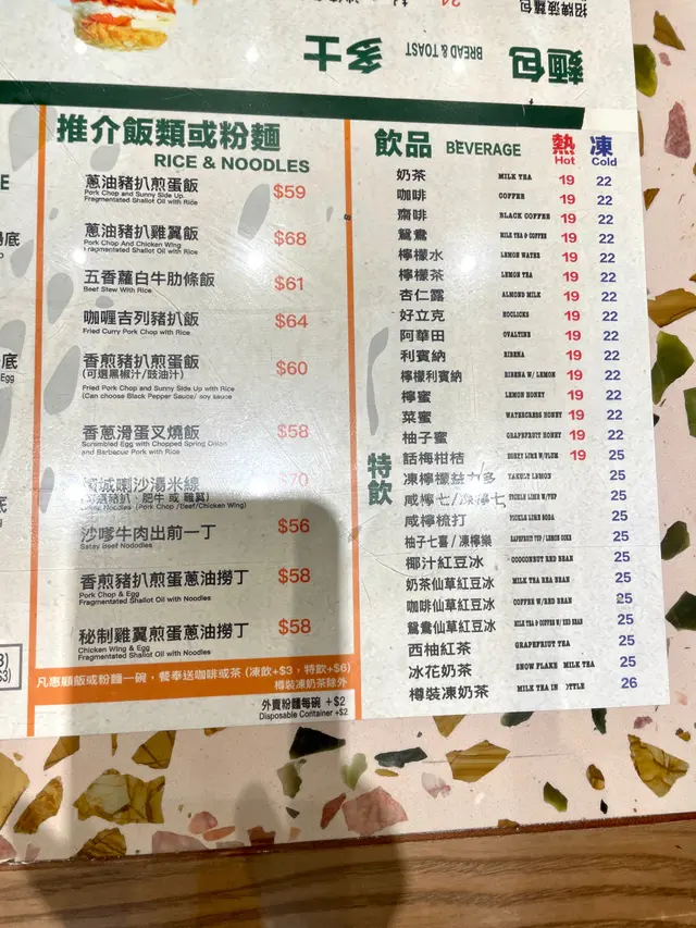 呢排去開附近做野,每次朝早行過都見到被遊客大排長龍,心諗咪又係茶記一間?洗唔洗呀~~今日下午路過見間野唔洗排隊,橫掂都要醫肚,就試試有咩唔同。其實都唔知佢出名啲咩食物,見自己要補下血,又有我最愛嘅芫茜湯底,就嗌碗豬潤牛肉皮蛋芫茜米 跟 熱奶茶。餐飲先到,有港式奶茶香,色澤都似嘅,但飲落口就偏淡,中規中矩;碗米大概等咗8分鐘,上枱時都有被驚艷到一下,估唔到佢都幾足料!芫茜都唔菇寒(你哋知啦 有啲餐廳真係得一少攝仔就算嫁嘛⋯)整體味道都唔錯。$69足料粉麵 連 飲品,尖沙咀地段算係咁啦!